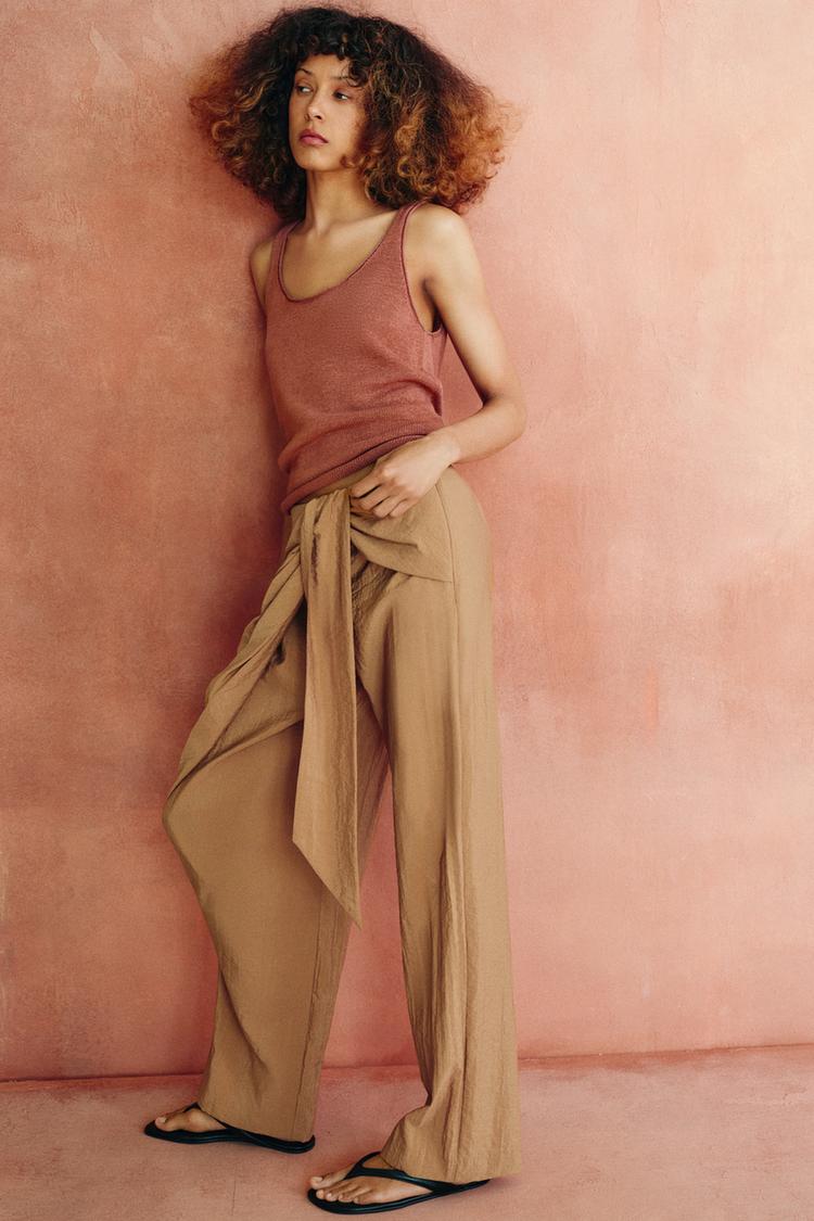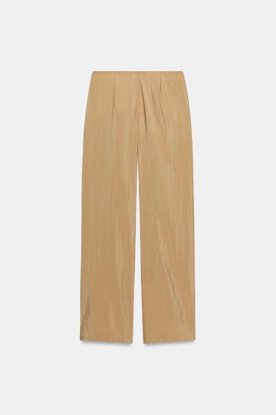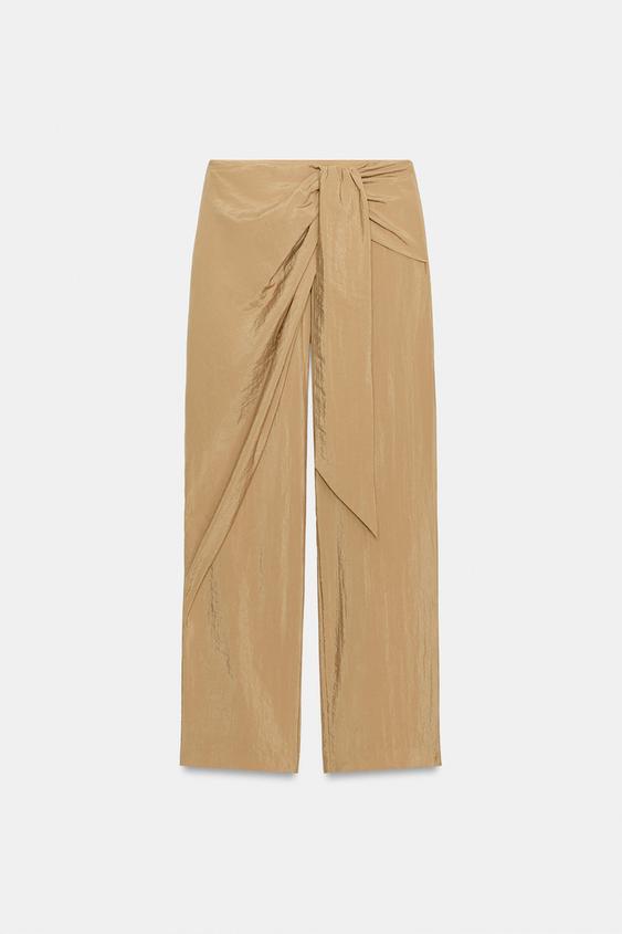ZARA БРЮКИ ПРЯМОГО КРОЯ В СТИЛЕ ПАРЕО, СВЕТЛО-БЕЖЕВЫЙ
