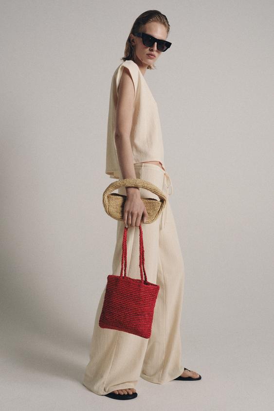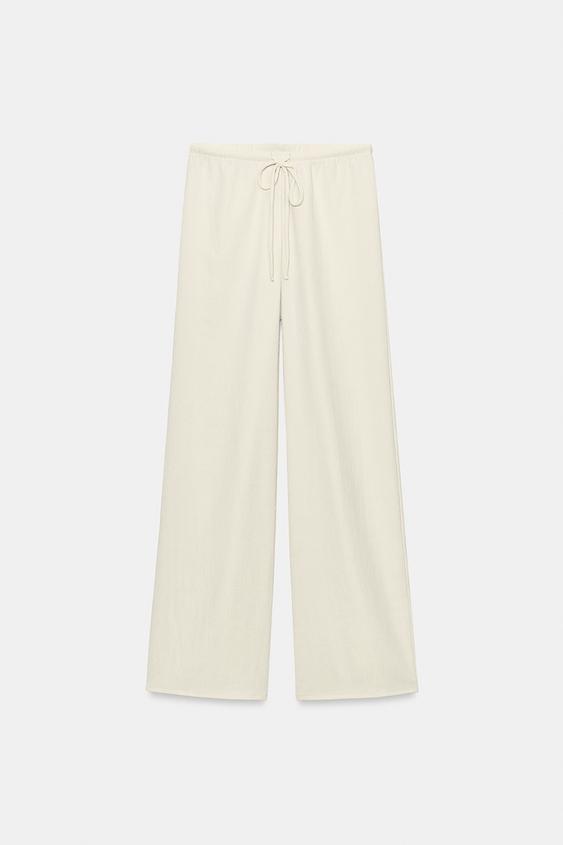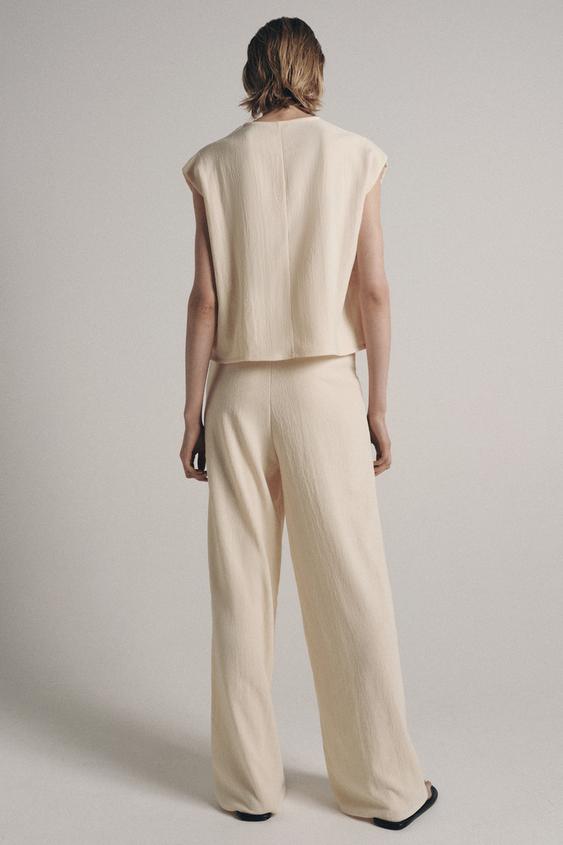 ZARA БРЮКИ ПРЯМОГО КРОЯ В СТИЛЕ РУСТИК, ЭКРЮ