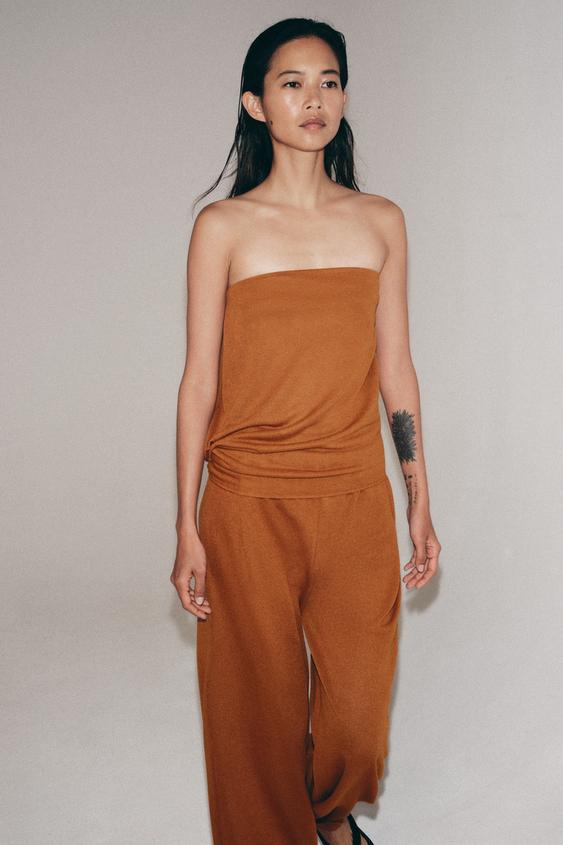 ZARA БРЮКИ ПРЯМОГО КРОЯ В СТИЛЕ РУСТИК, ОХРА