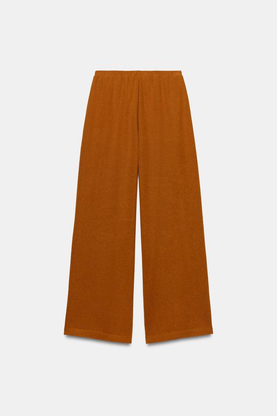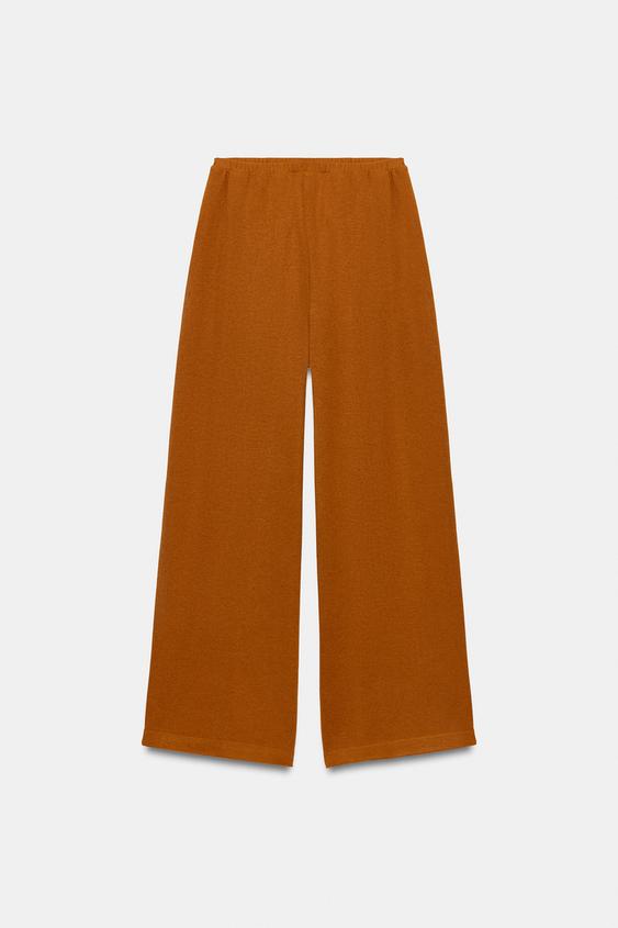 Брюки со средней посадкой, выполненные из вискозной пряжи. Эластичный пояс. Прямой крой.