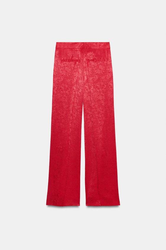 ZARA БРЮКИ ПРЯМОГО КРОЯ ЖАККАРД, МАЛИНОВЫЙ