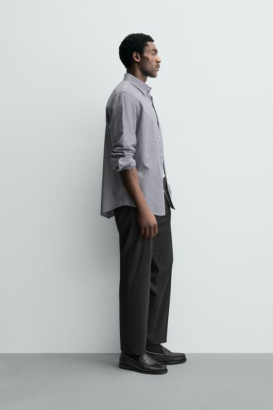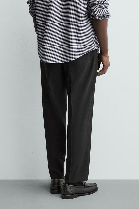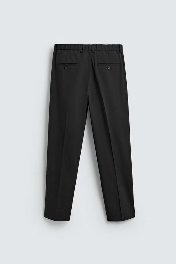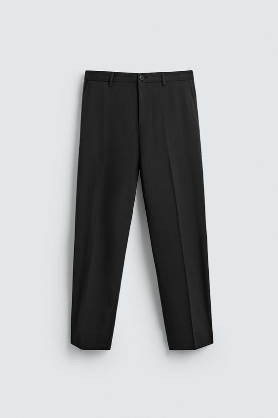 ZARA БРЮКИ REGULAR FIT ИЗ СМЕСОВОЙ ШЕРСТИ NON IRON, ЧЕРНЫЙ