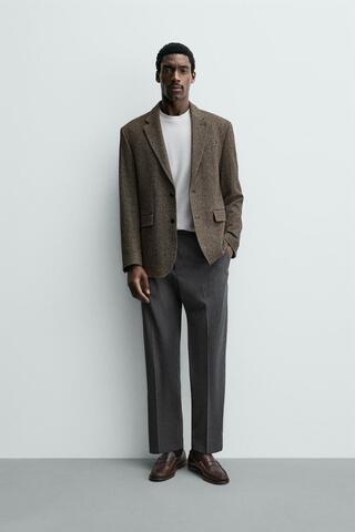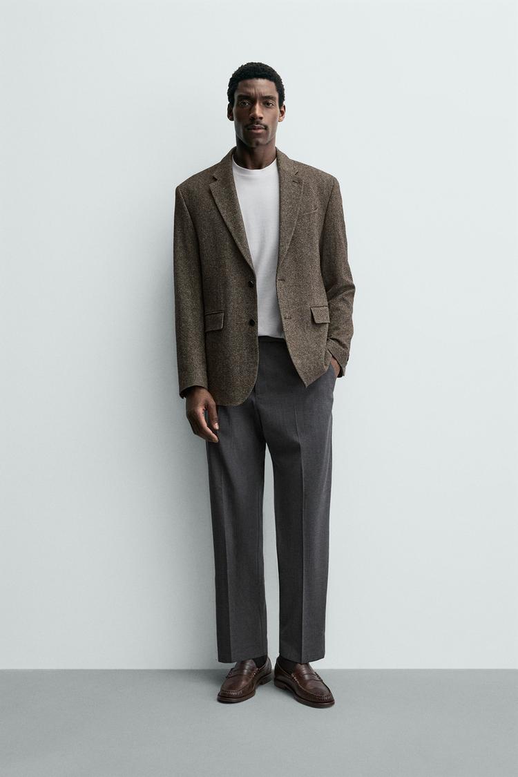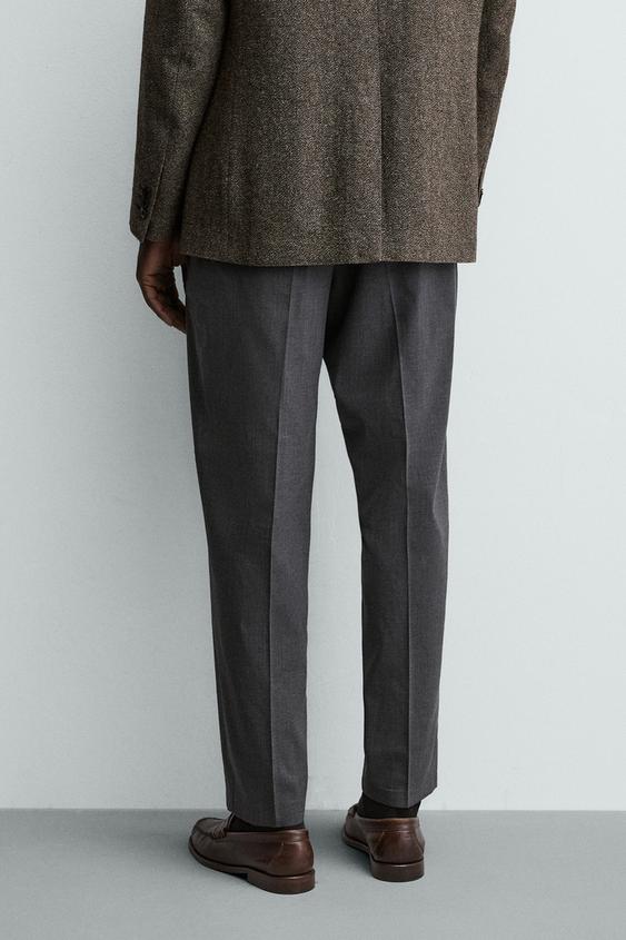 ZARA БРЮКИ REGULAR FIT ИЗ СМЕСОВОЙ ШЕРСТИ NON IRON, СЕРЫЙ