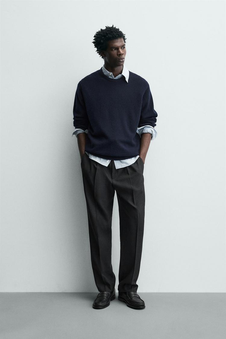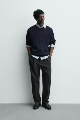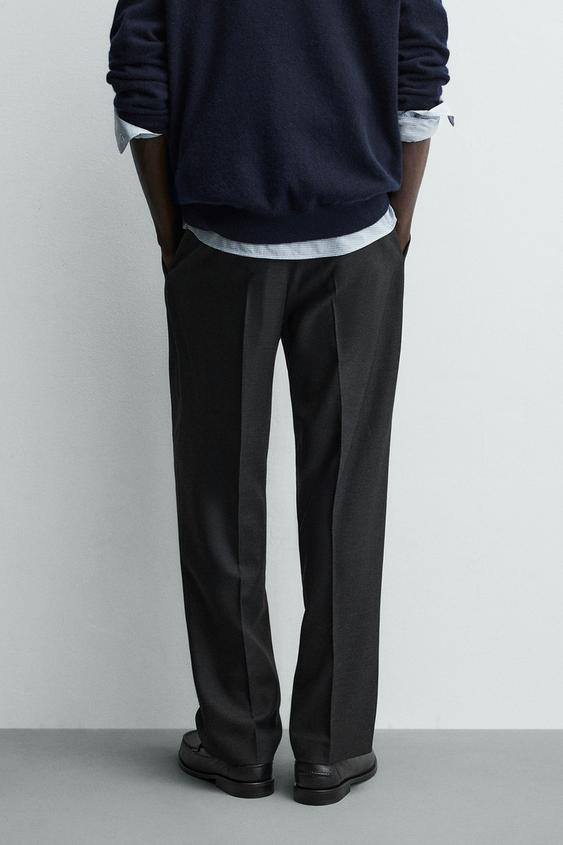 ZARA БРЮКИ REGULAR FIT СО СКЛАДКАМИ, АНТРАЦИТОВО-СЕРЫЙ