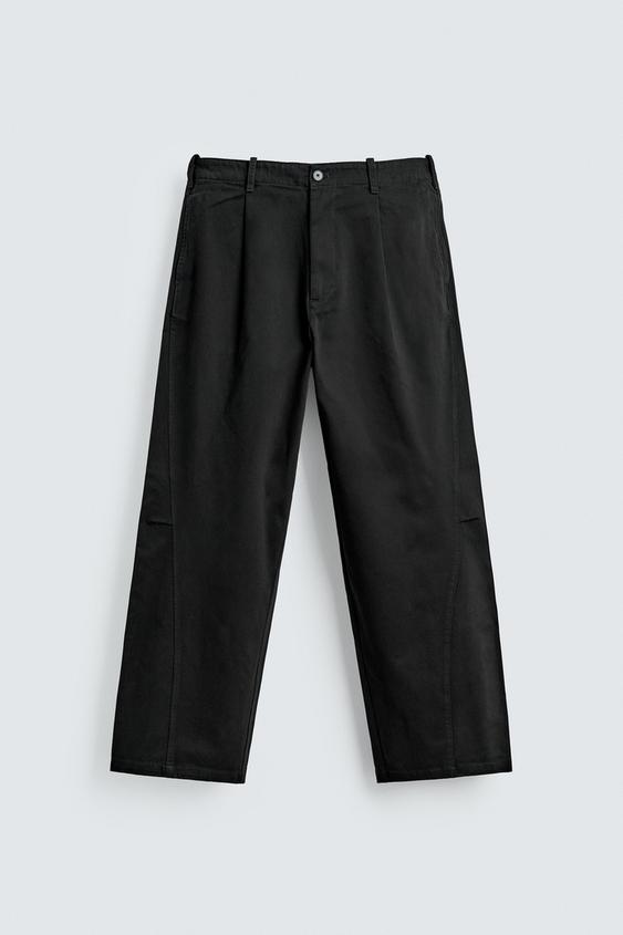 ZARA БРЮКИ RELAXED BALLOON FIT СО СКЛАДКАМИ, ЧЕРНЫЙ