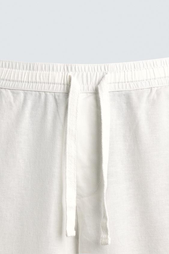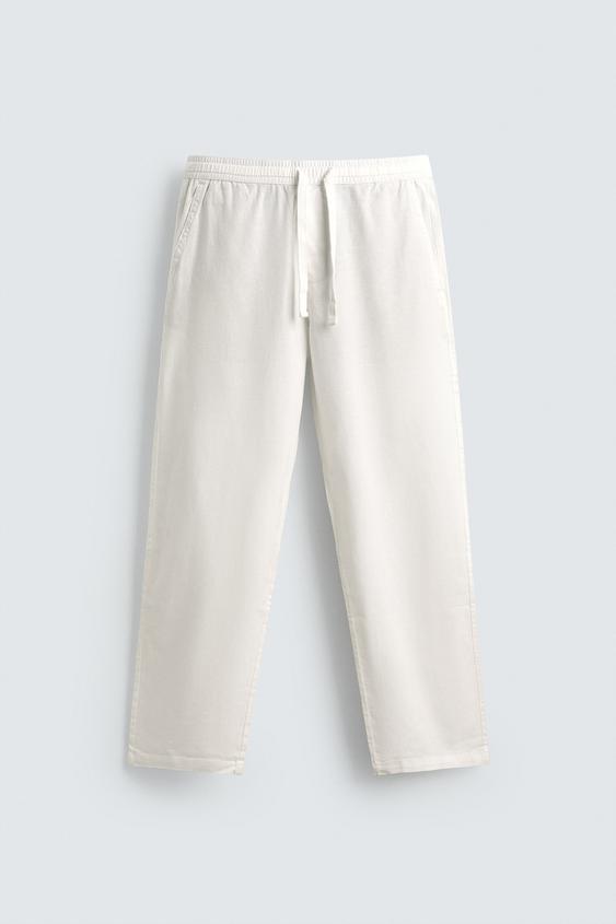 ZARA БРЮКИ RELAXED FIT ИЗ СМЕСИ ХЛОПКА, ЖЕЛТОВАТО-БЕЛЫЙ