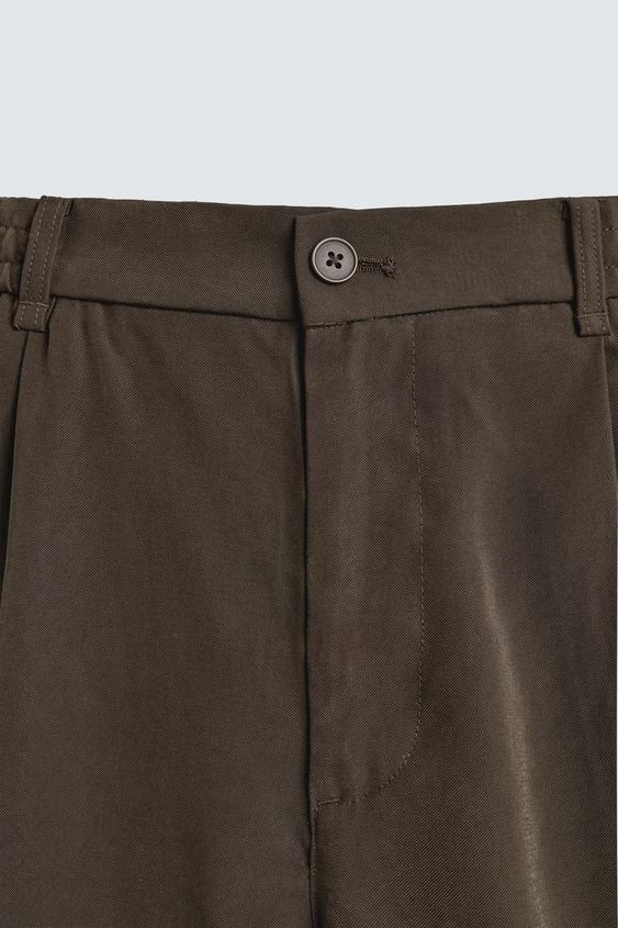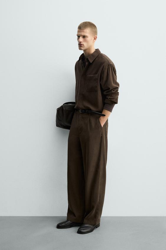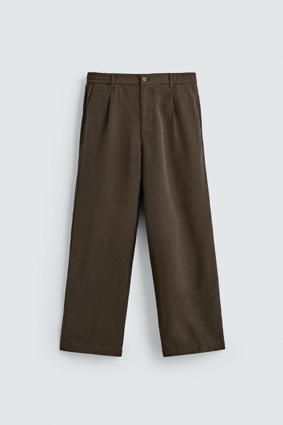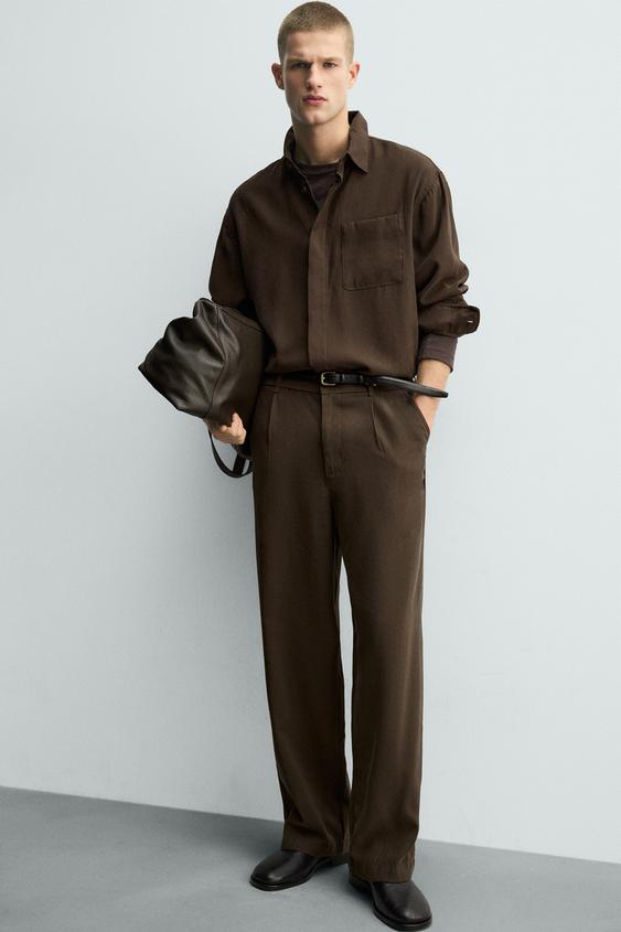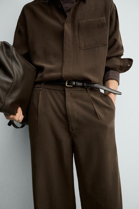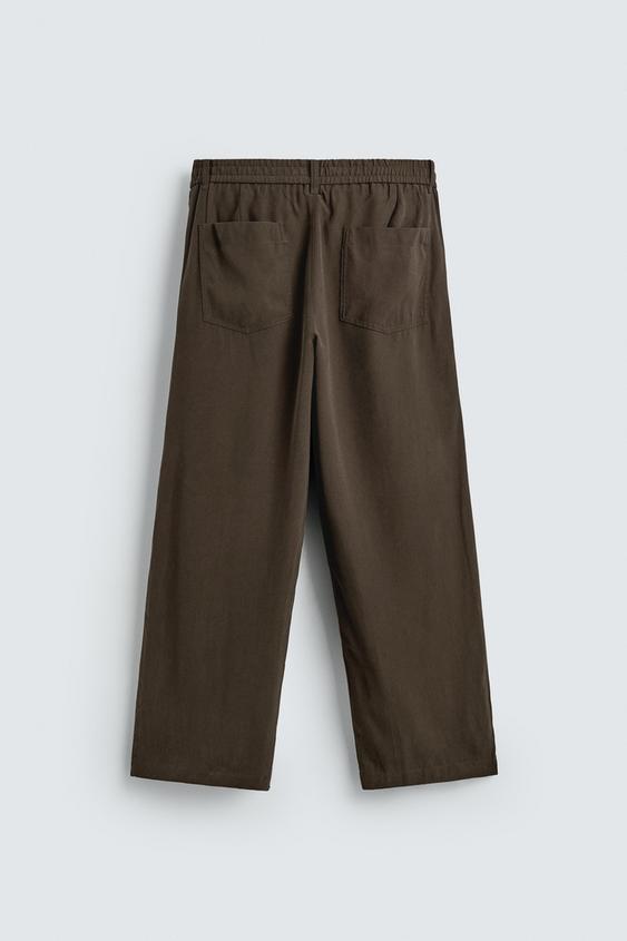 ZARA БРЮКИ RELAXED FIT ИЗ СТРУЯЩЕЙСЯ ТКАНИ, КОРИЧНЕВЫЙ