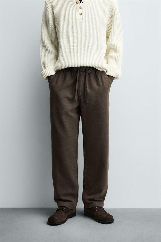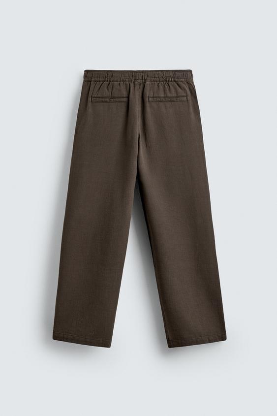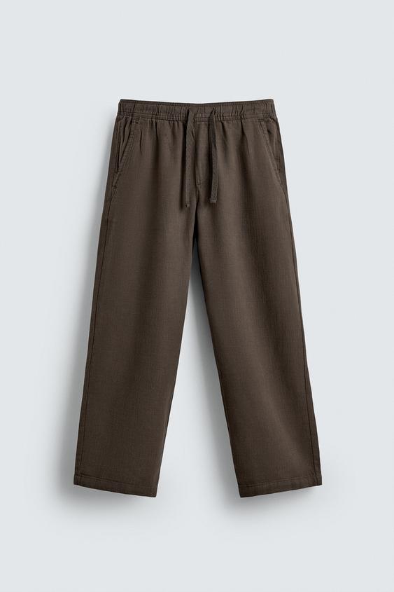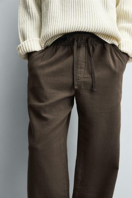 ZARA БРЮКИ RELAXED FIT С РЕЛЬЕФНОЙ СТРУКТУРОЙ, КОРИЧНЕВЫЙ