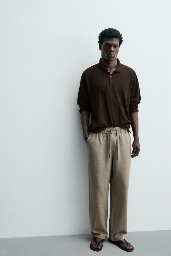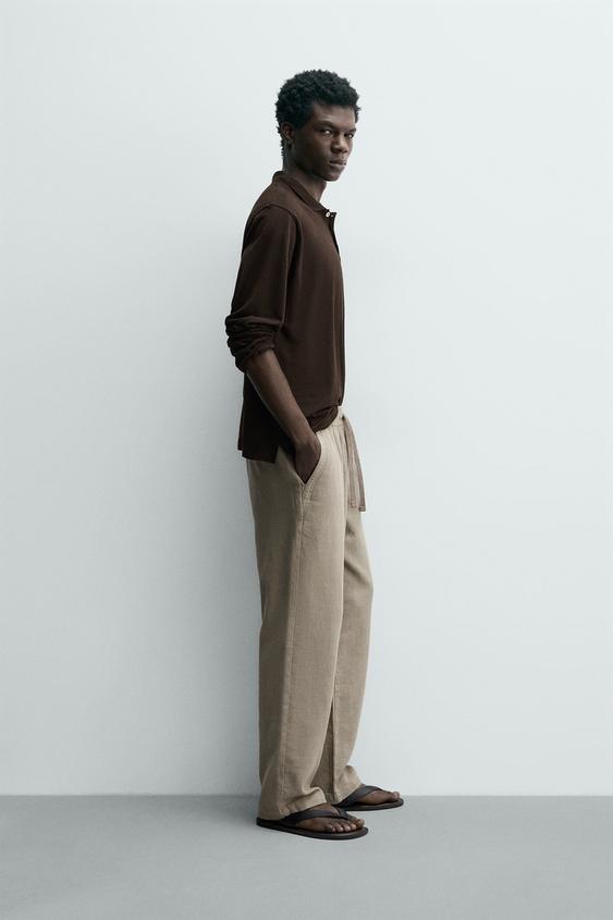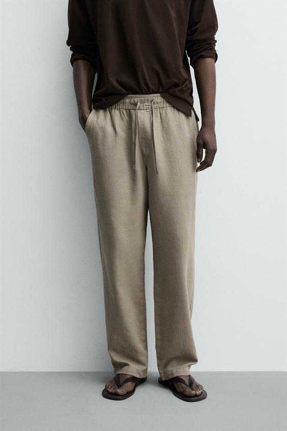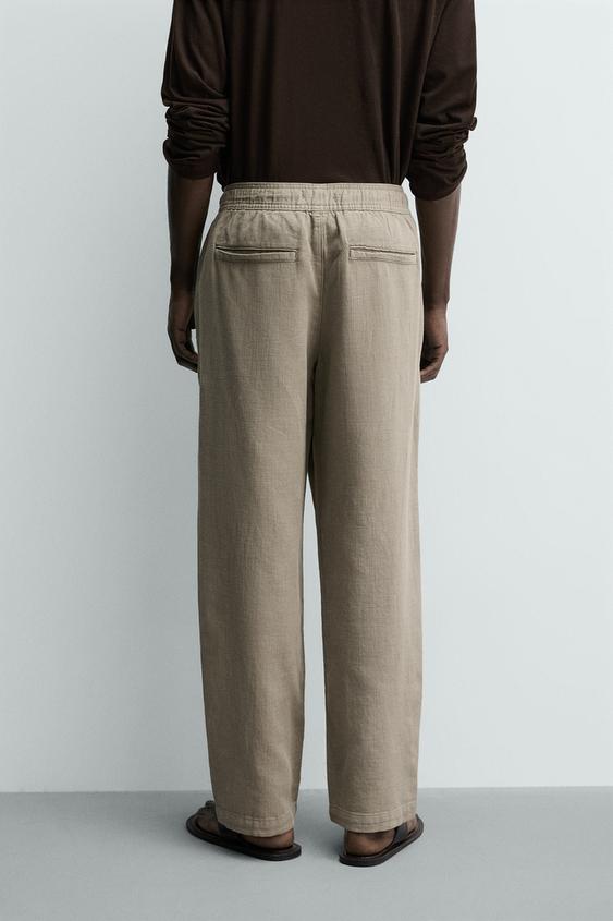 ZARA БРЮКИ RELAXED FIT С РЕЛЬЕФНОЙ СТРУКТУРОЙ, СЕРО-КОРИЧНЕВЫЙ