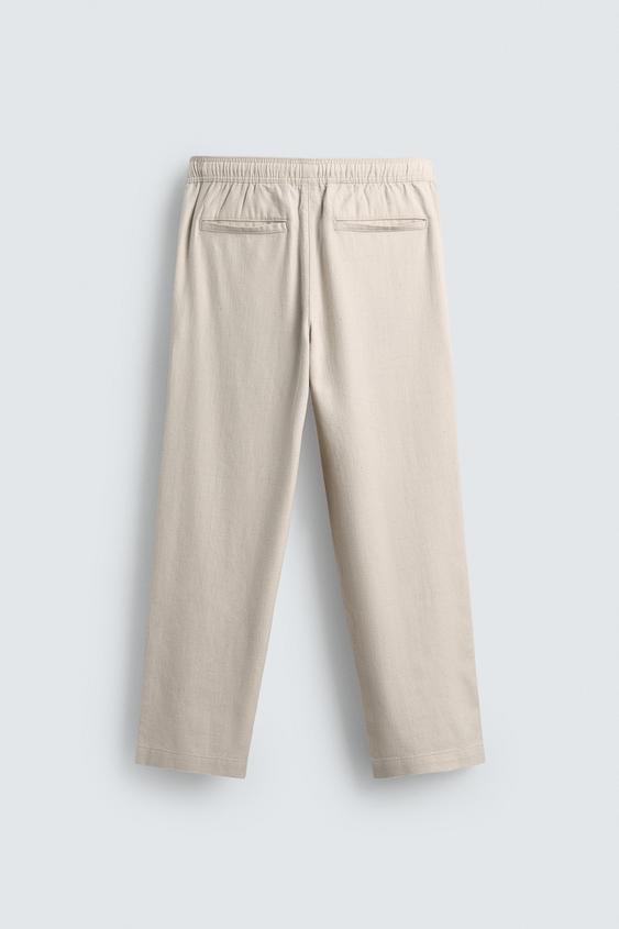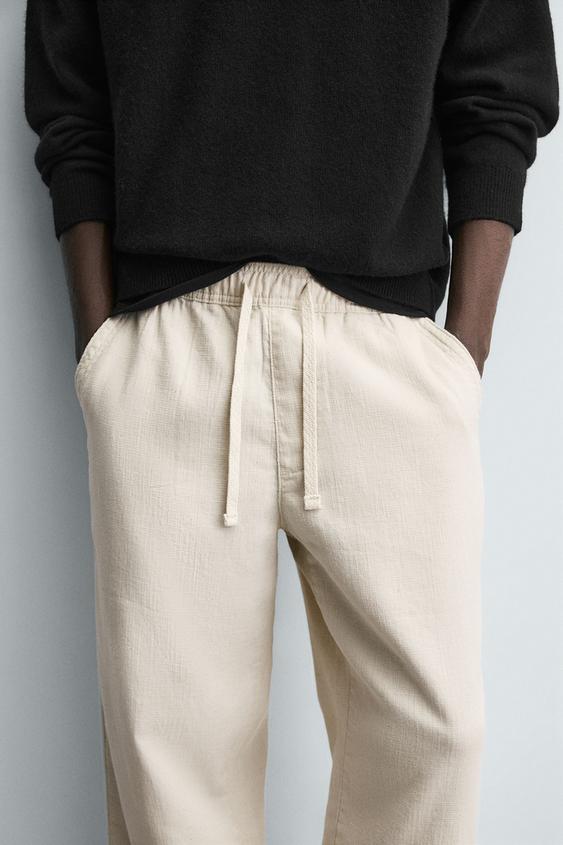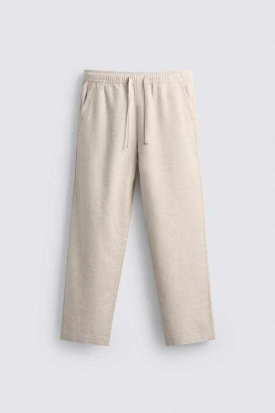 ZARA БРЮКИ RELAXED FIT С РЕЛЬЕФНОЙ СТРУКТУРОЙ, СВЕТЛО-БЕЖЕВЫЙ