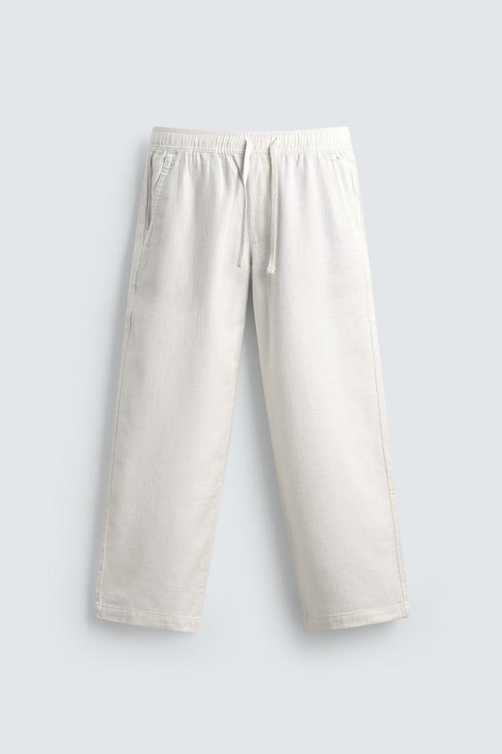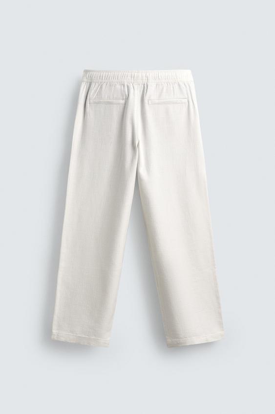 ZARA БРЮКИ RELAXED FIT С РЕЛЬЕФНОЙ СТРУКТУРОЙ, ЖЕЛТОВАТО-БЕЛЫЙ