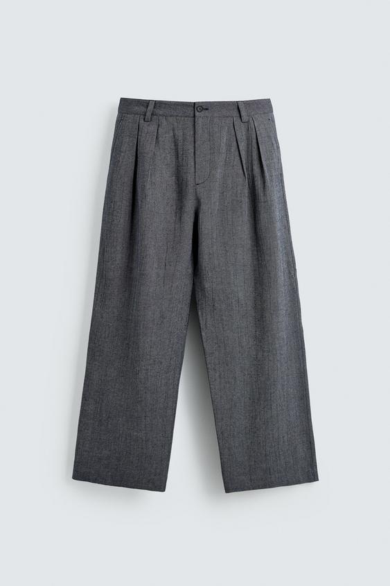 ZARA БРЮКИ RELAXED FIT СО СКЛАДКАМИ, СИНИЙ