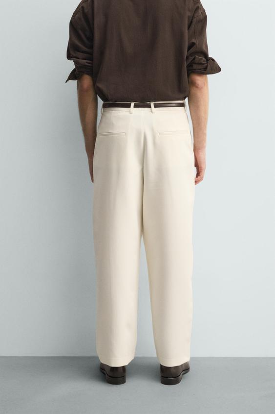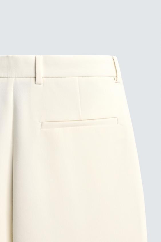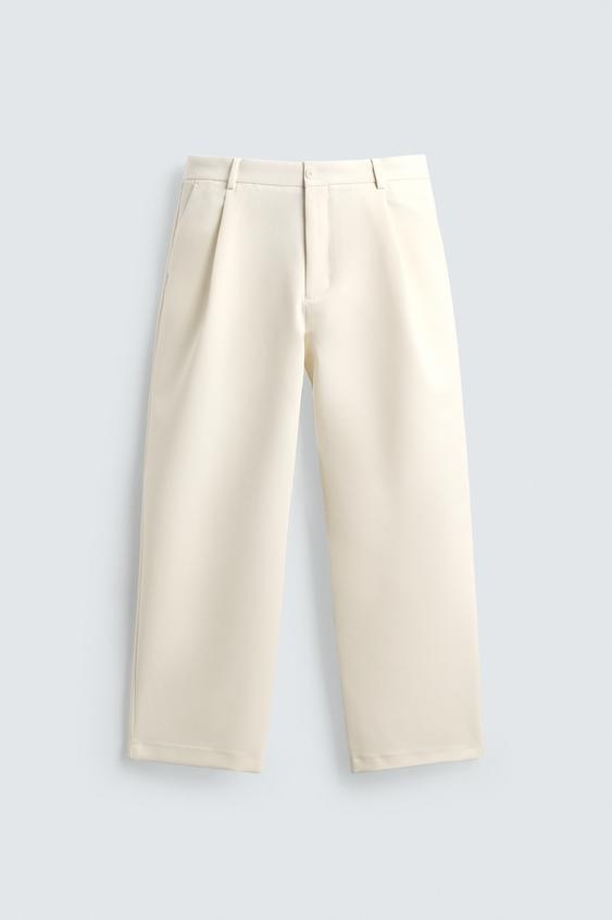 ZARA БРЮКИ RELAXED FIT СО СКЛАДКАМИ, ЖЕЛТОВАТО-БЕЛЫЙ