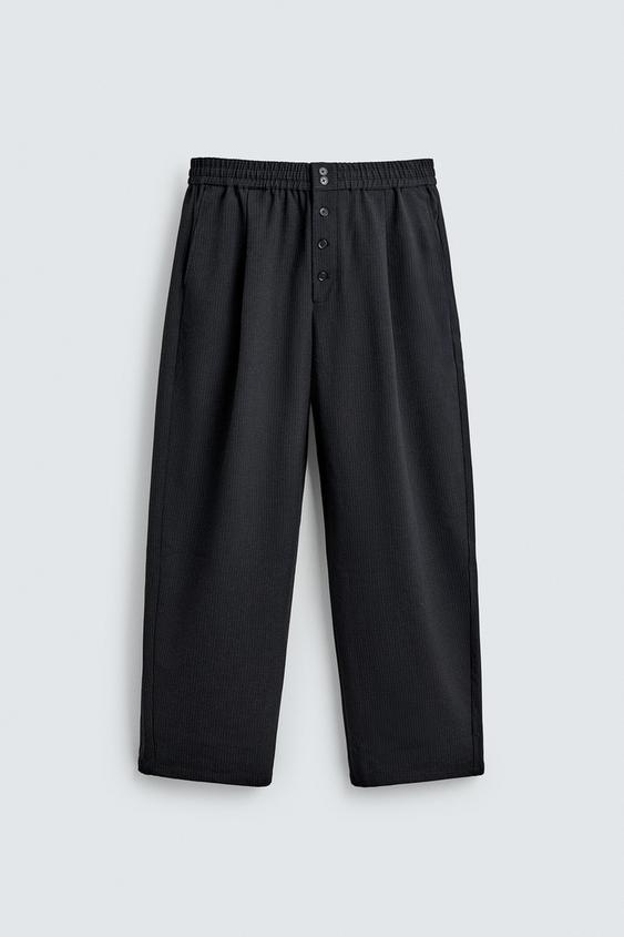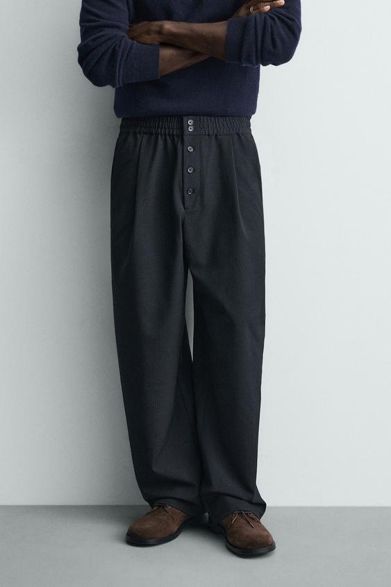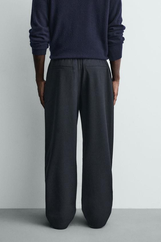 ZARA БРЮКИ RELAXED FIT В ТОНКУЮ ПОЛОСКУ, МОРСКОЙ СИНИЙ