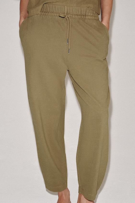 ZARA БРЮКИ С ЭФФЕКТОМ ПОТЕРТОСТИ, ОЛИВКОВЫЙ