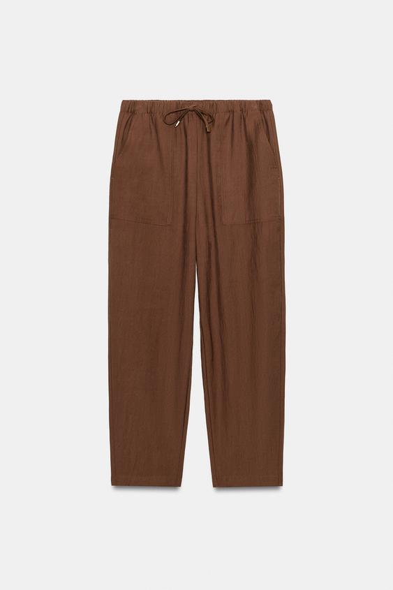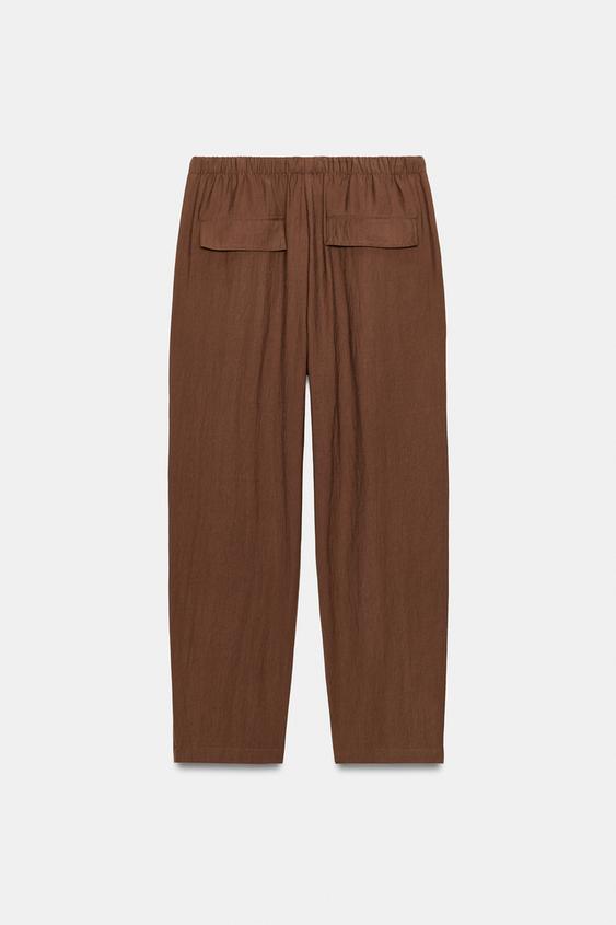 ZARA БРЮКИ С ЭЛАСТИЧНЫМ ПОЯСОМ, КОРИЧНЕВЫЙ