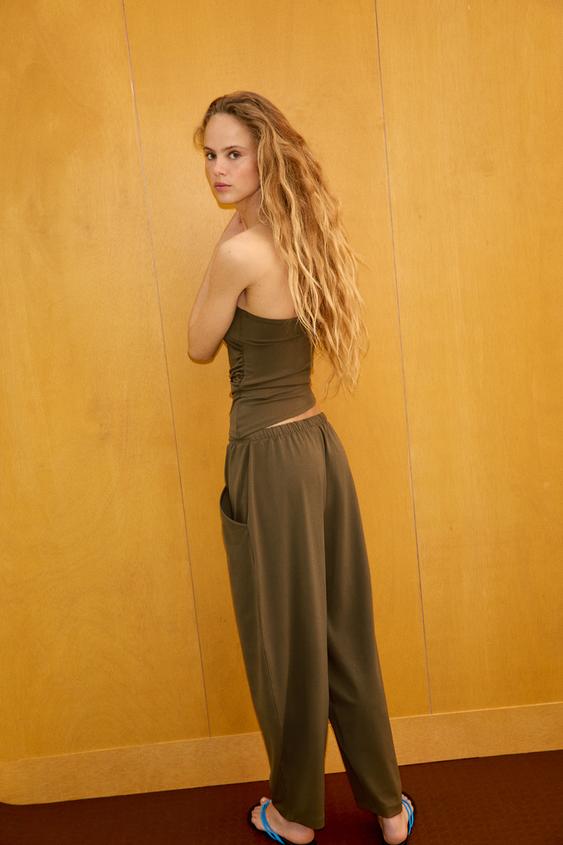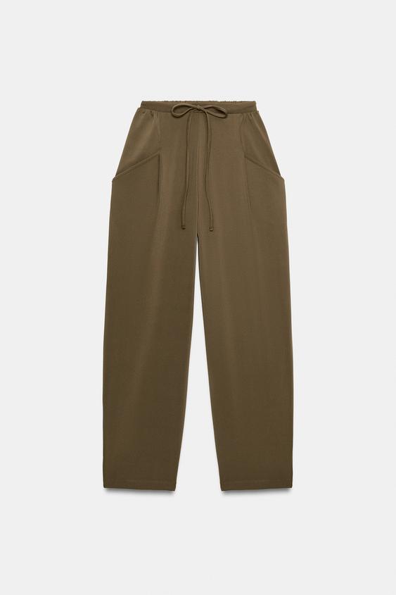 ZARA БРЮКИ С КАРМАНАМИ И ТЕКСТУРОЙ, ХАКИ