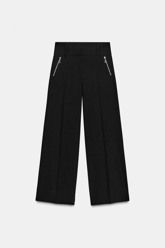 ZARA БРЮКИ С КАРМАНАМИ НА МОЛНИИ, ЧЕРНЫЙ