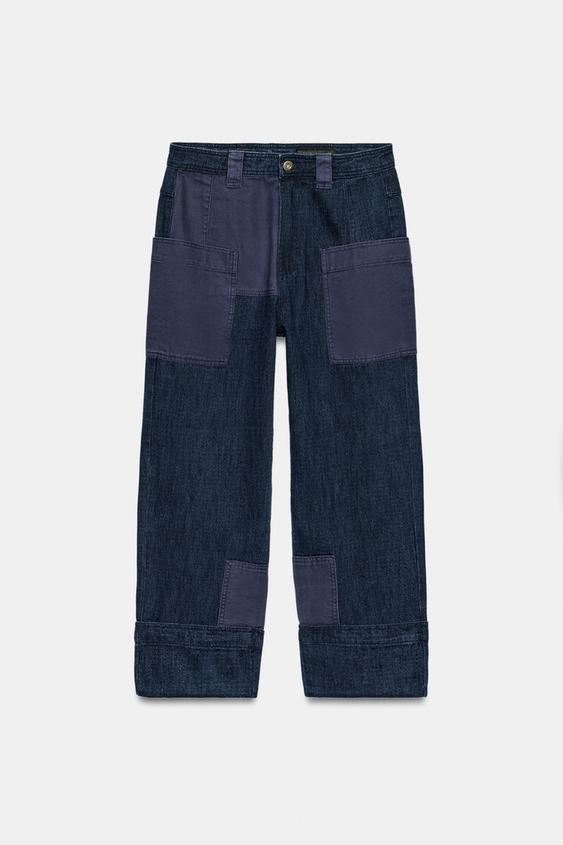 ZARA БРЮКИ С КОМБИНИРОВАННЫМИ КАРМАНАМИ — ZW COLLECTION, СИНИЙ