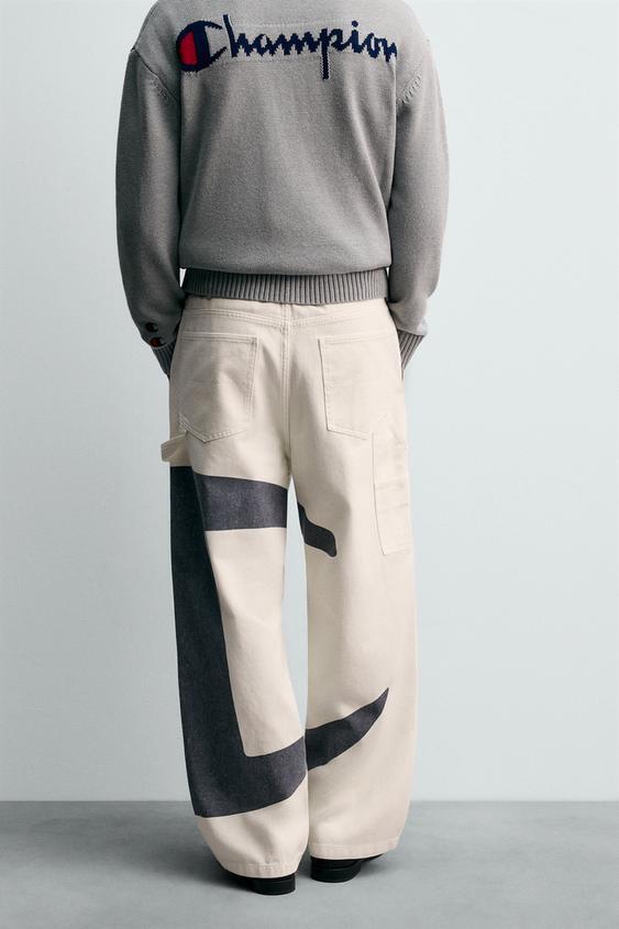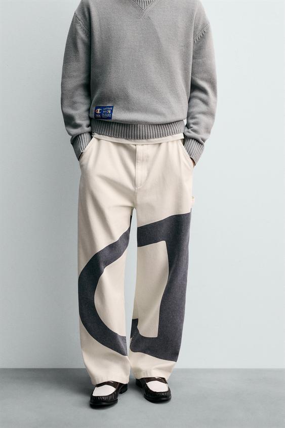 ZARA X CHAMPION ® БРЮКИ С КОНТРАСТНЫМ ЛОГОТИПОМ, ЭКРЮ