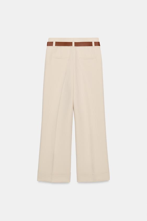 ZARA БРЮКИ С ОТВОРОТАМИ И РЕМНЕМ, ЭКРЮ