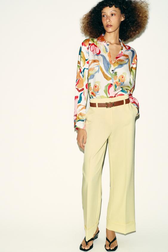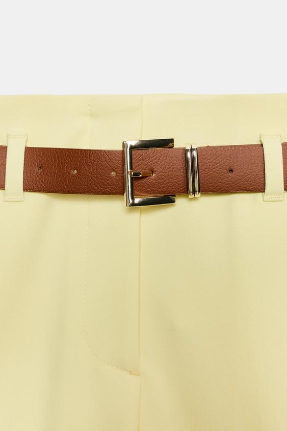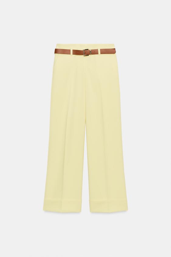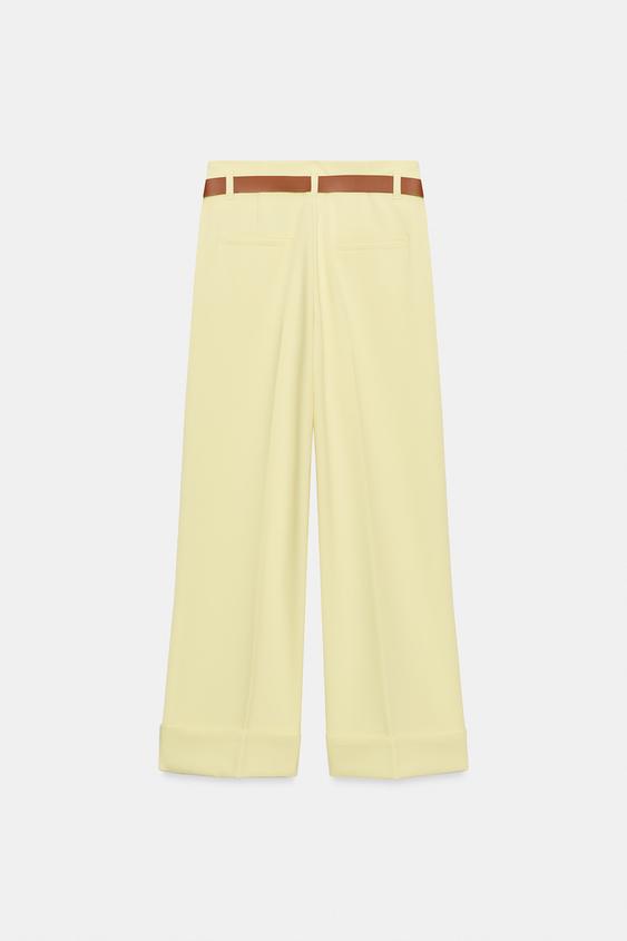 ZARA БРЮКИ С ОТВОРОТАМИ И РЕМНЕМ, СВЕТЛО-ЖЕЛТЫЙ