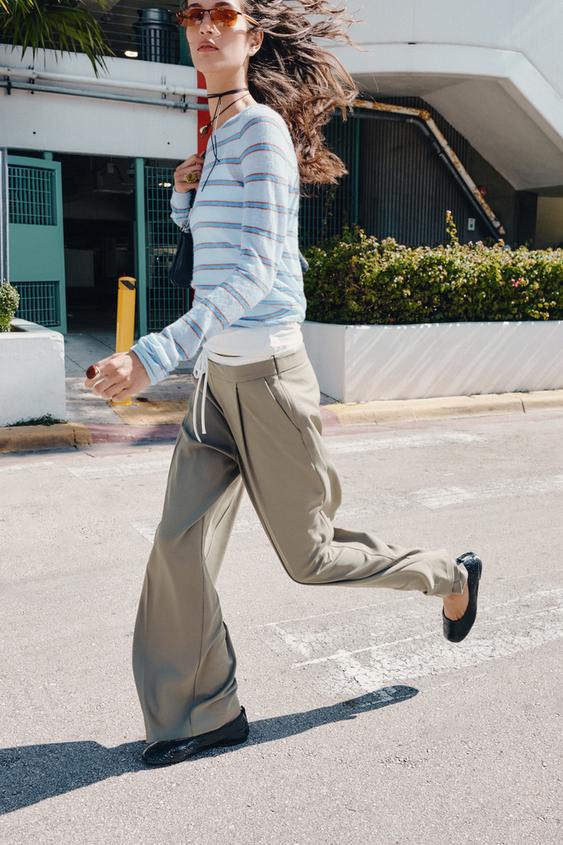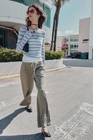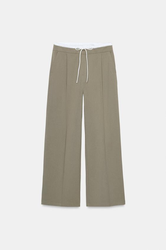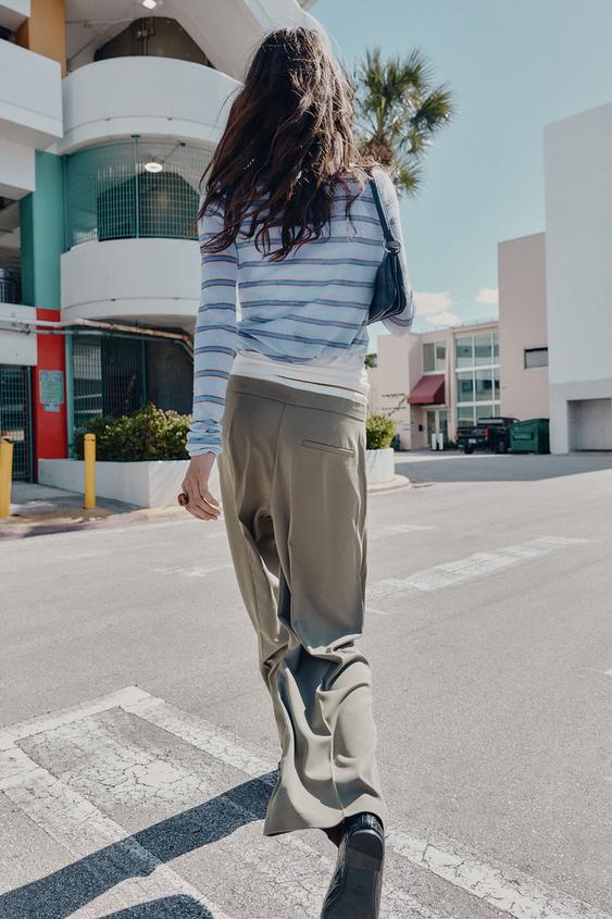 ZARA БРЮКИ С ШИРОКИМИ ШТАНИНАМИ И ДВОЙНЫМ ПОЯСОМ, ХАКИ