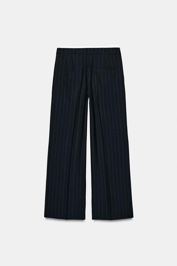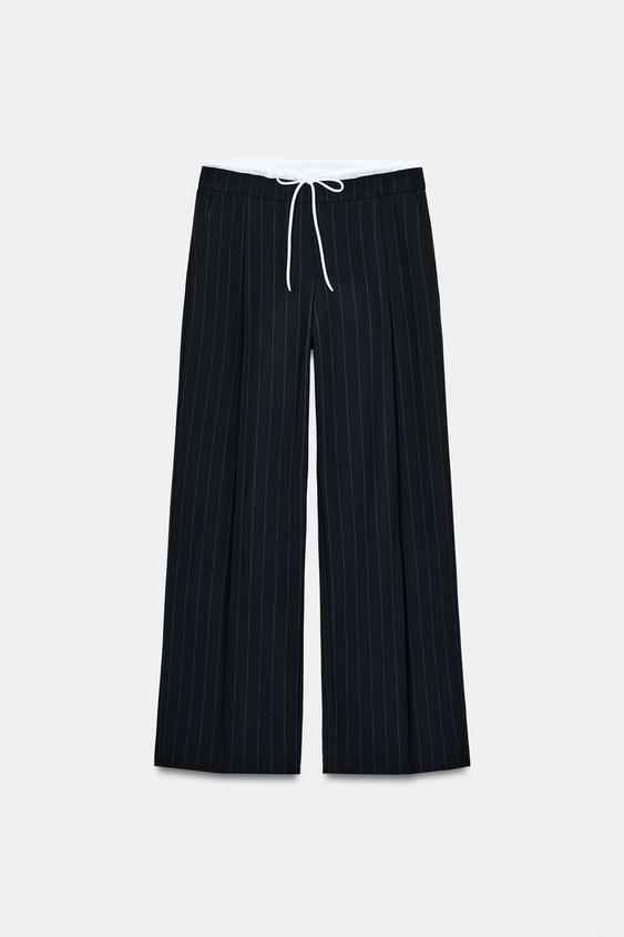 ZARA БРЮКИ С ШИРОКИМИ ШТАНИНАМИ И ДВОЙНЫМ ПОЯСОМ, ПОЛОСКИ