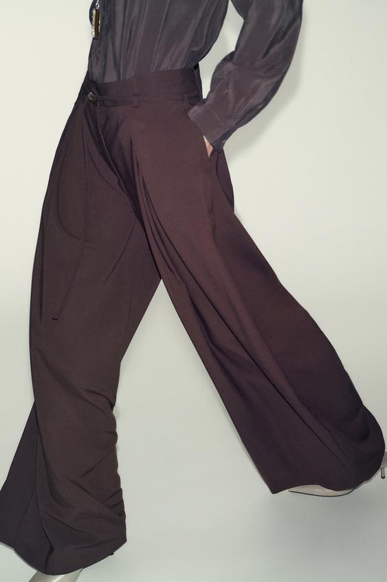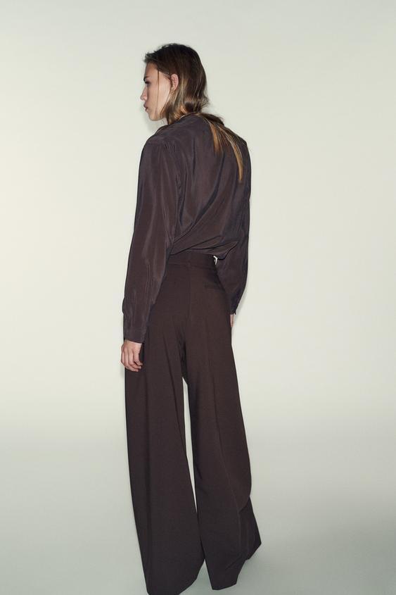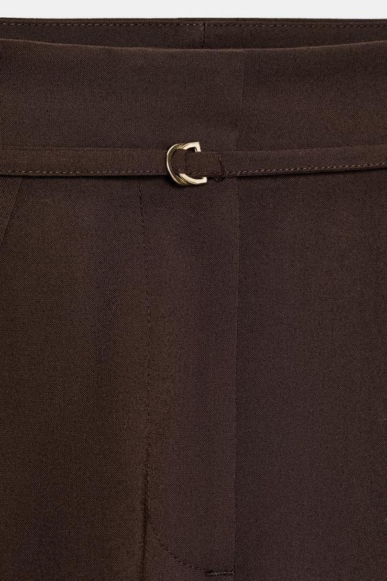 ZARA БРЮКИ С ШИРОКИМИ ШТАНИНАМИ И ТОНКИМ РЕМНЕМ, КОРИЧНЕВЫЙ