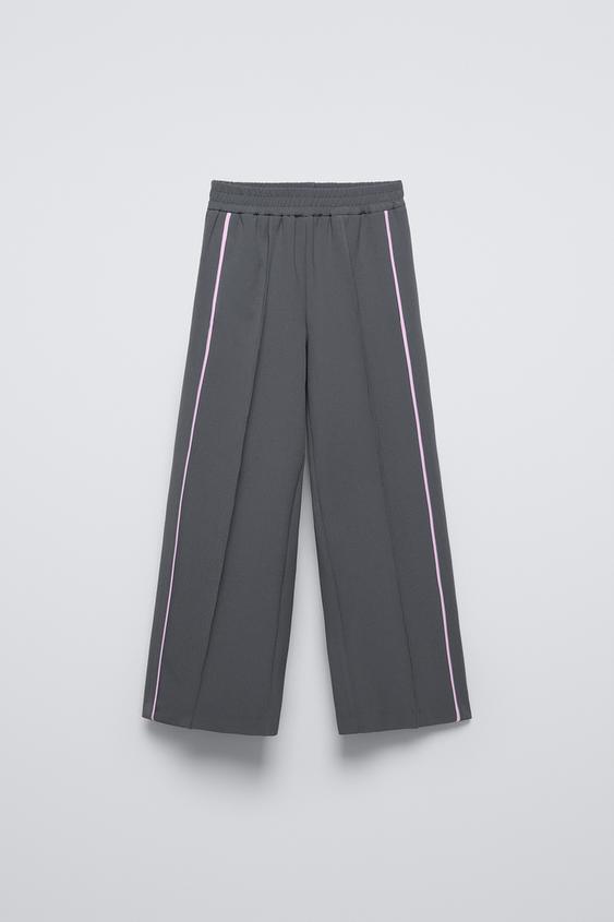 ZARA БРЮКИ С ШИРОКИМИ ШТАНИНАМИ, СЕРЫЙ