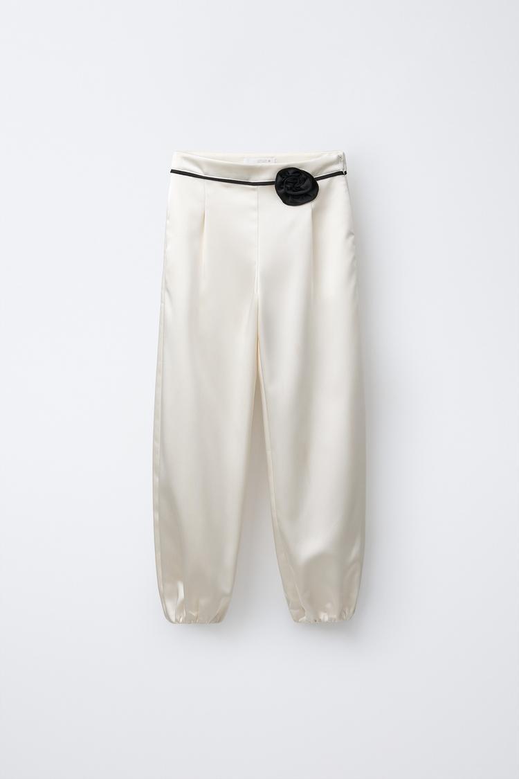 ZARA БРЮКИ С ЦВЕТКОМ, ЭКРЮ