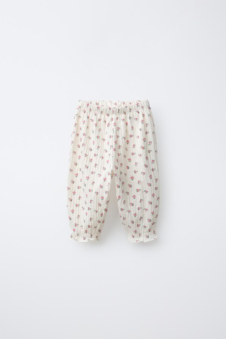 ZARA БРЮКИ С ЦВЕТОЧНЫМ ПРИНТОМ И ТЕКСТУРОЙ, ЭКРЮ