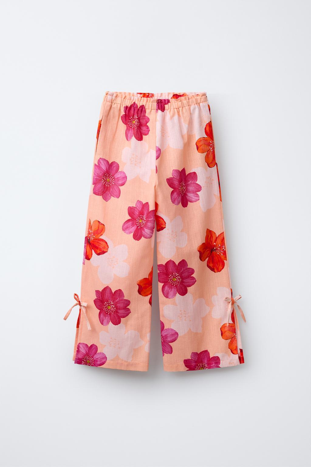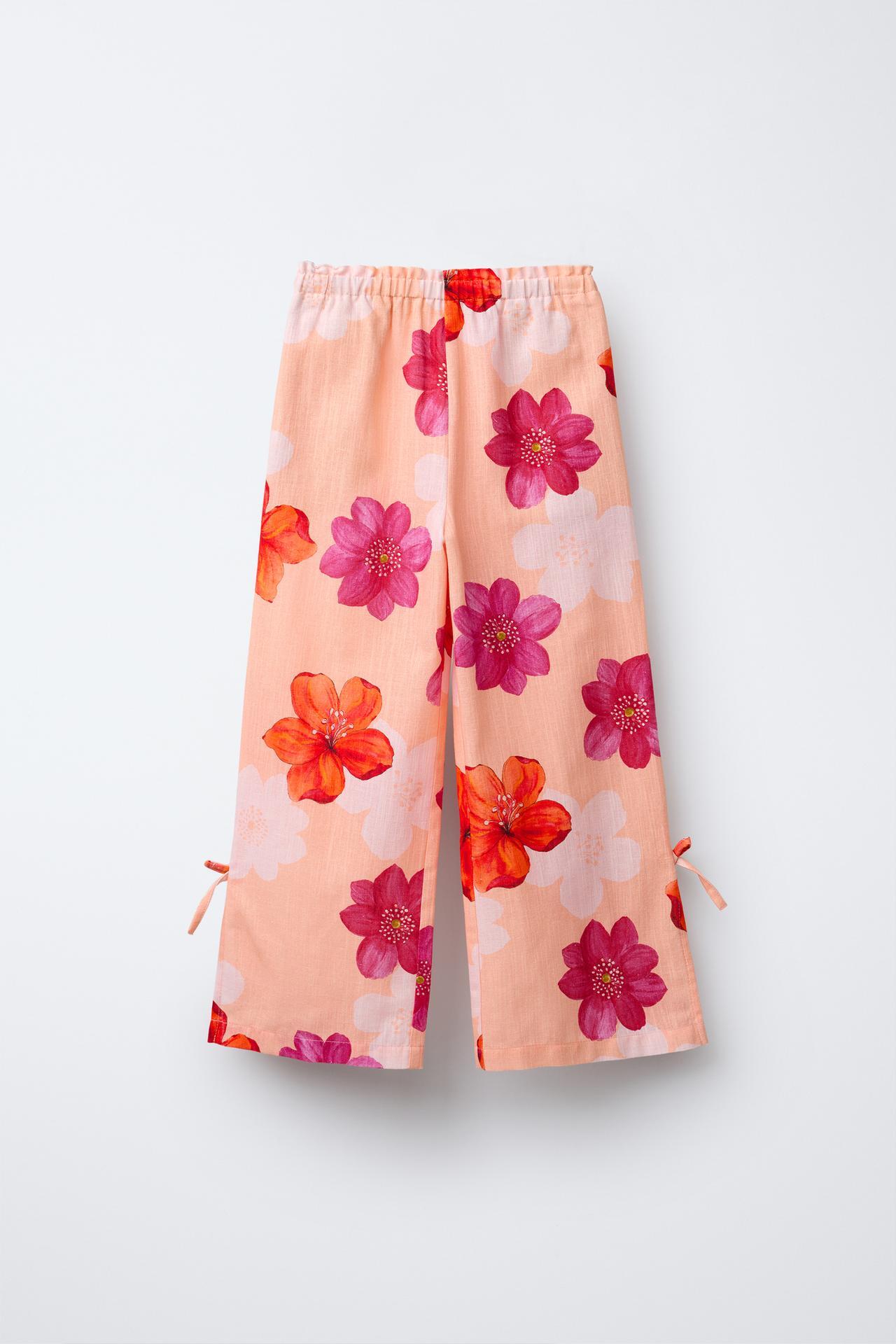 ZARA БРЮКИ С ЦВЕТОЧНЫМ ПРИНТОМ, СВЕТЛО-ОРАНЖЕВЫЙ
