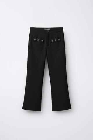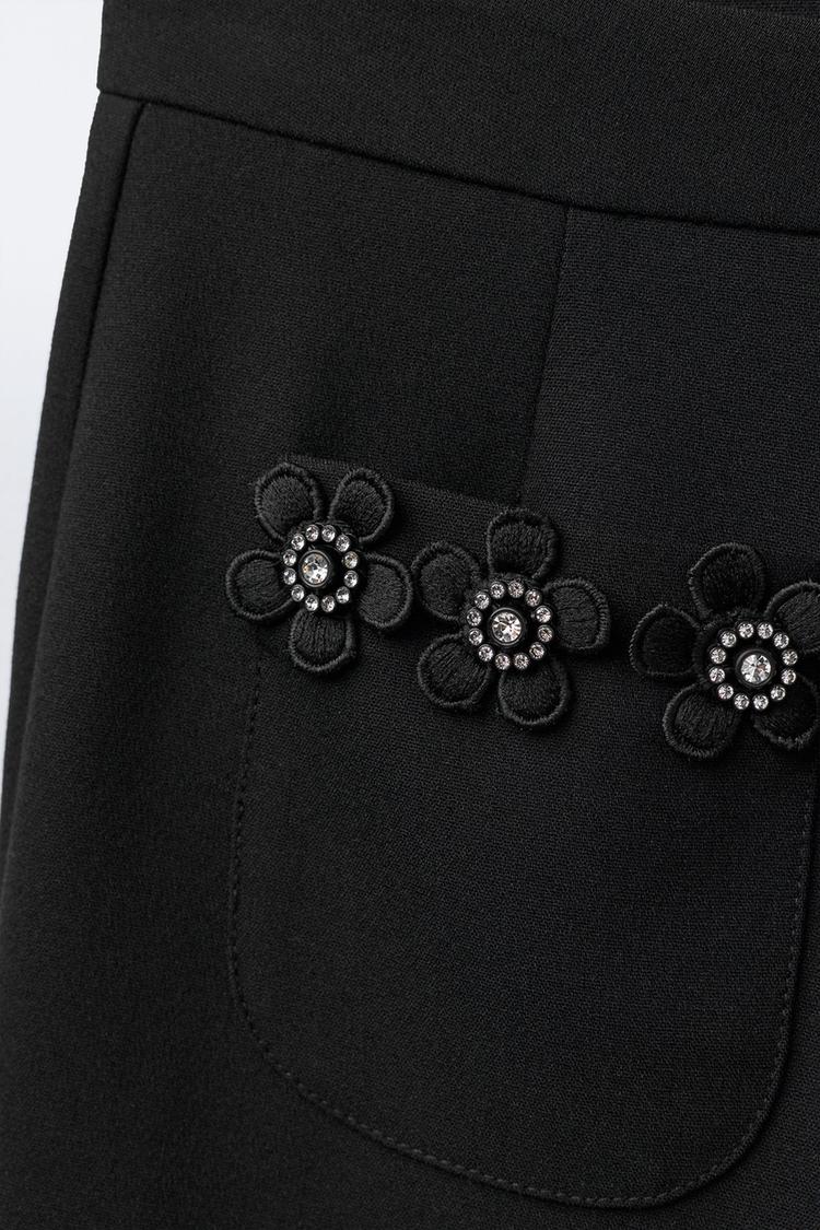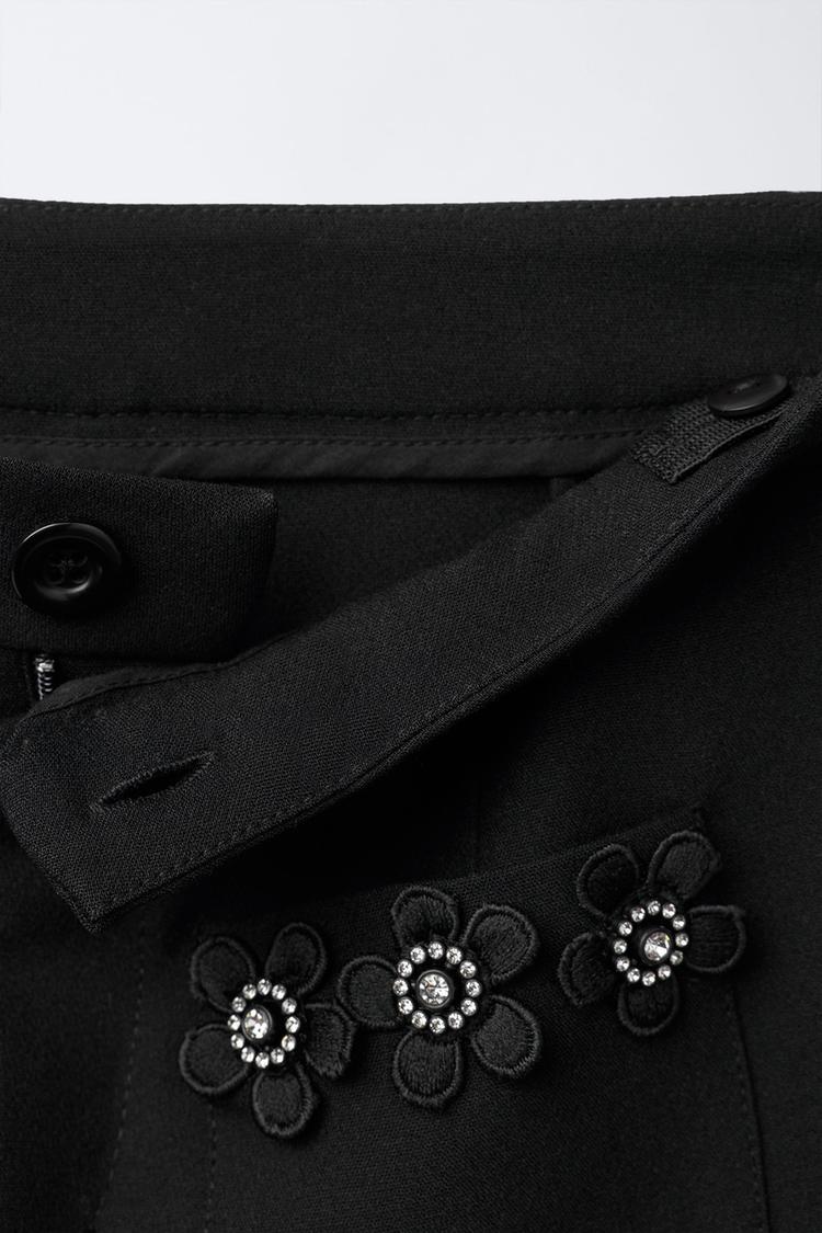 ZARA БРЮКИ С ЦВЕТОЧНЫМИ УКРАШЕНИЯМИ, ЧЕРНЫЙ