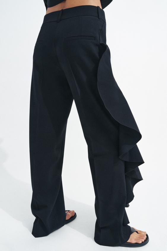 ZARA БРЮКИ С ВОЛАНАМИ — ZW COLLECTION, ЧЕРНЫЙ