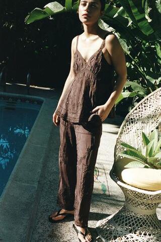 ZARA БРЮКИ С ВЫШИВКОЙ И БИСЕРОМ, КОРИЧНЕВЫЙ
