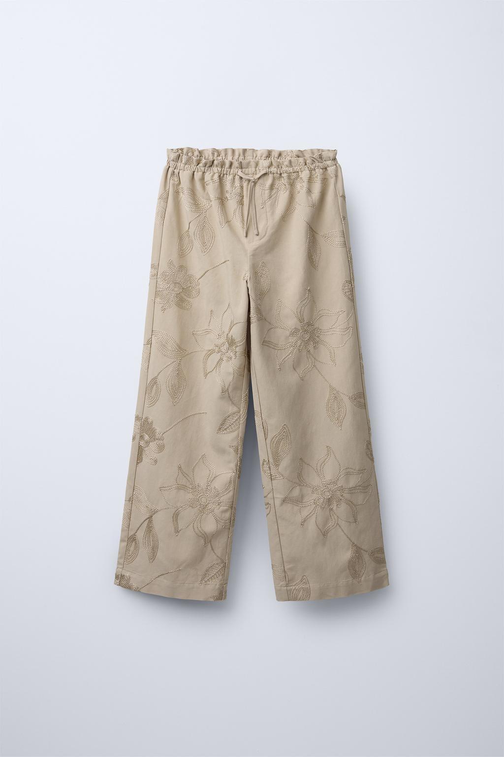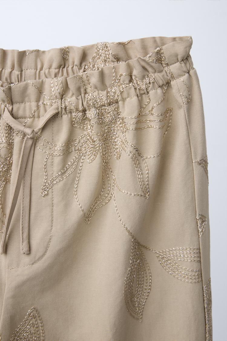ZARA БРЮКИ С ВЫШИВКОЙ, СВЕТЛО-БЕЖЕВЫЙ