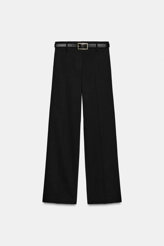ZARA БРЮКИ С ВЫСОКОЙ ПОСАДКОЙ И РЕМНЕМ, ЧЕРНЫЙ