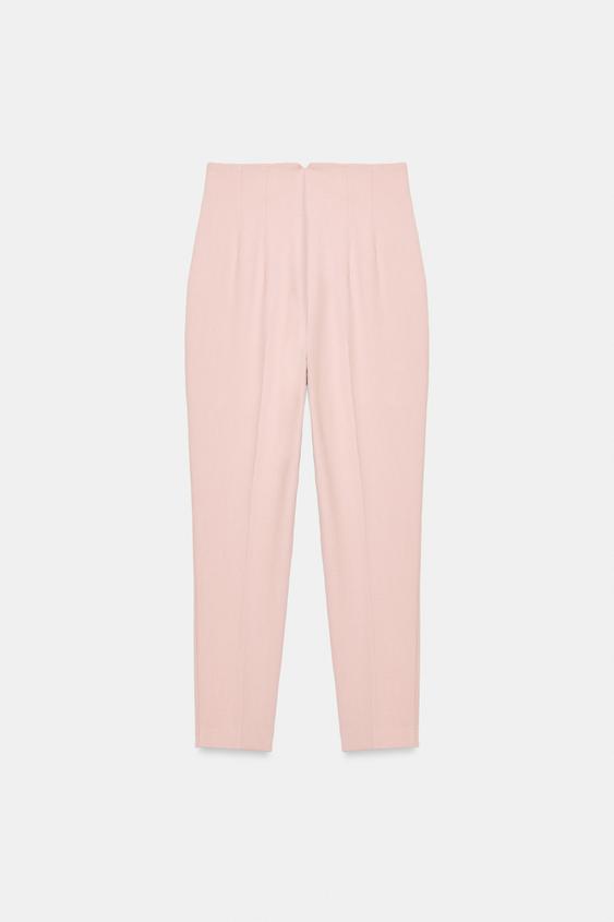 ZARA БРЮКИ С ВЫСОКОЙ ПОСАДКОЙ, РОЗОВЫЙ МЕЛАНЖ