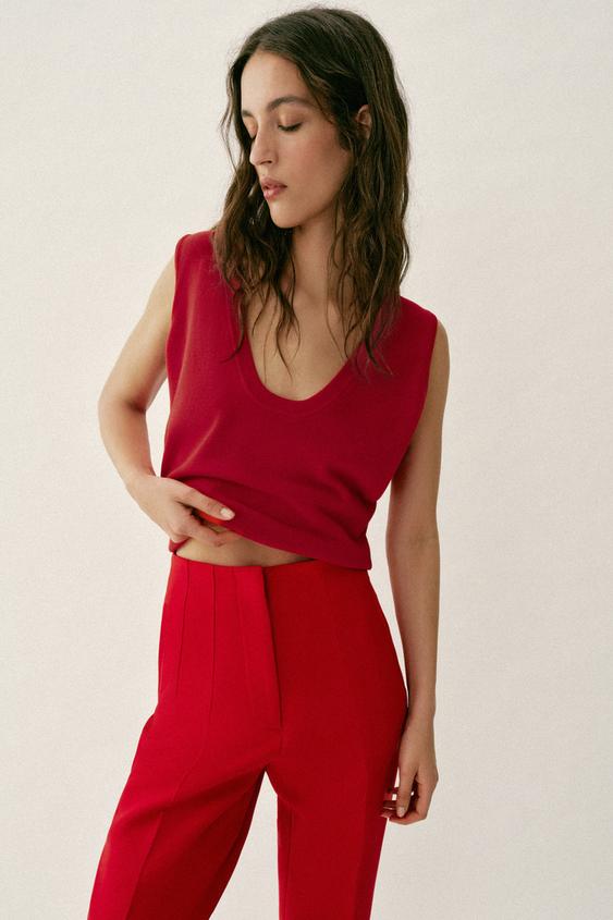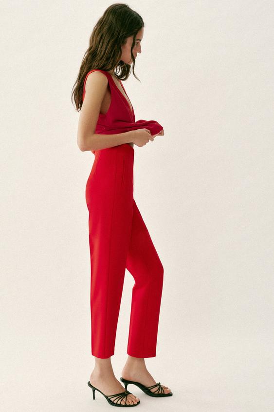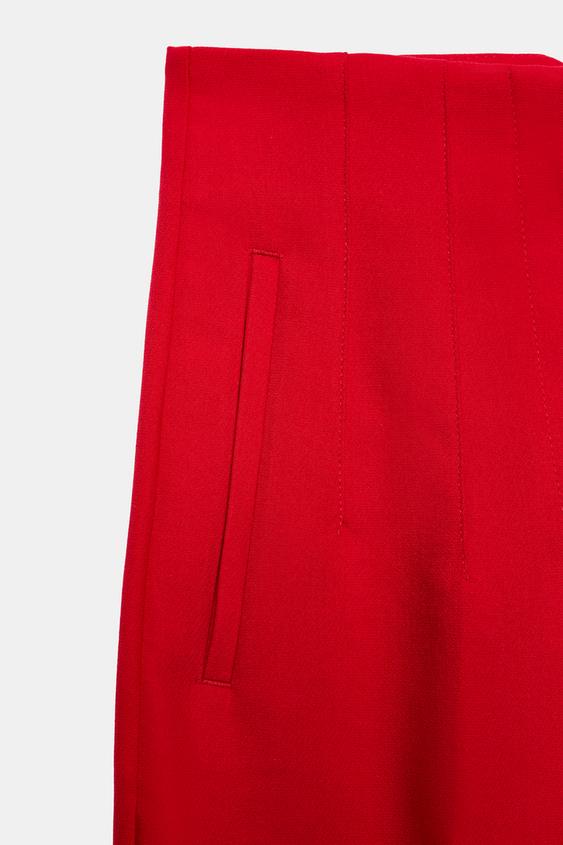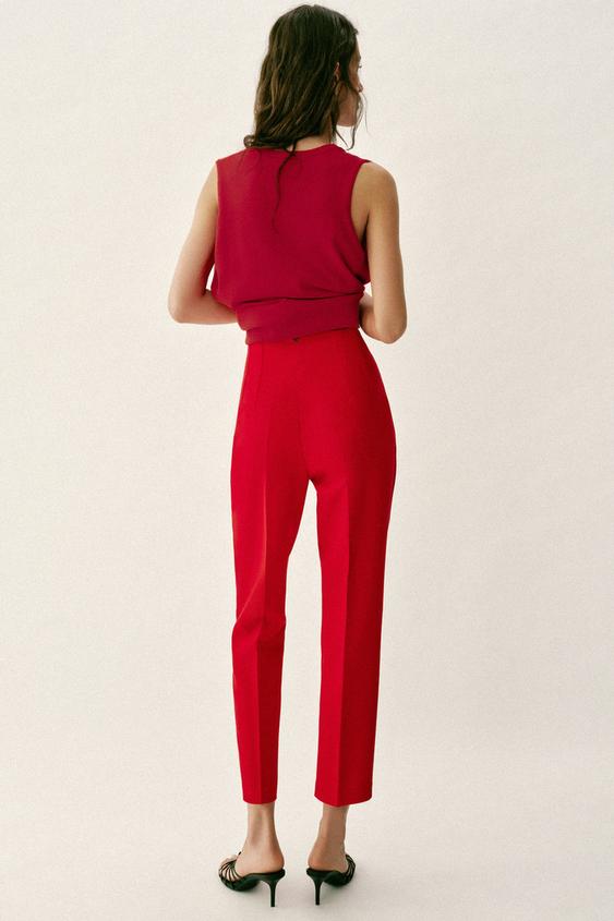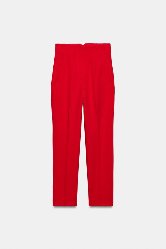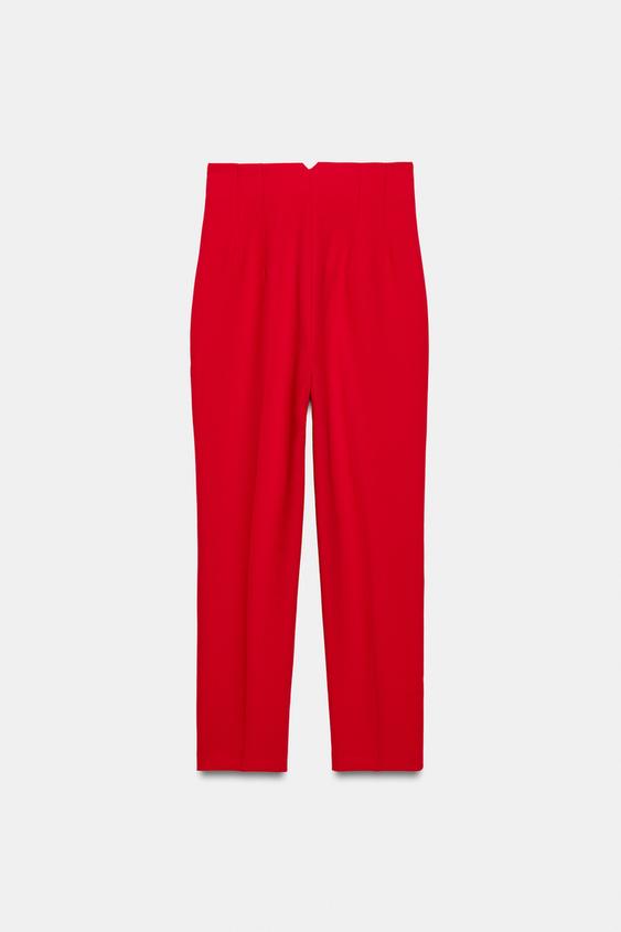 ZARA БРЮКИ С ВЫСОКОЙ ПОСАДКОЙ, ЯРКИЙ КРАСНЫЙ
