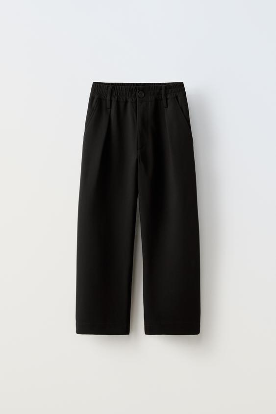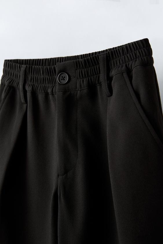 ZARA БРЮКИ С ЗАЩИПАМИ, ЧЕРНЫЙ