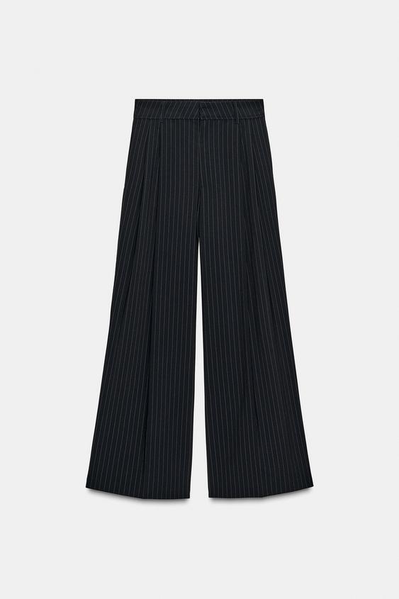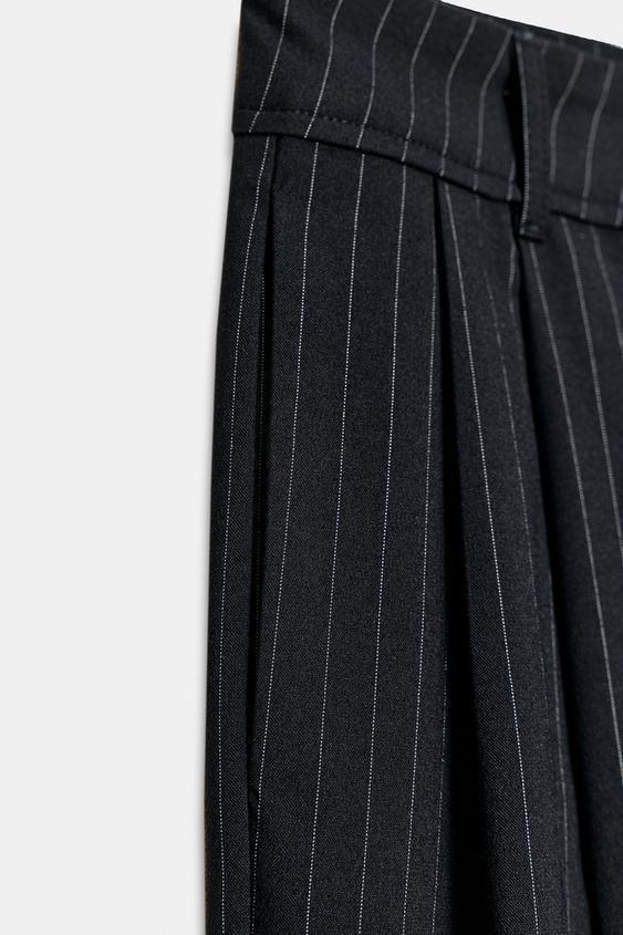ZARA БРЮКИ С ЗАЩИПАМИ И КЛАПАНАМИ, ТЕМНО-СИНИЙ/БЕЛЫЙ