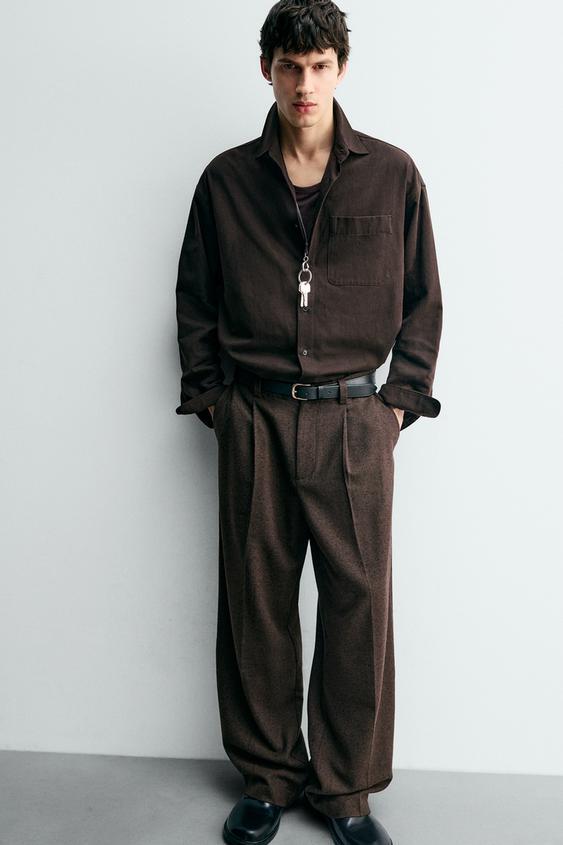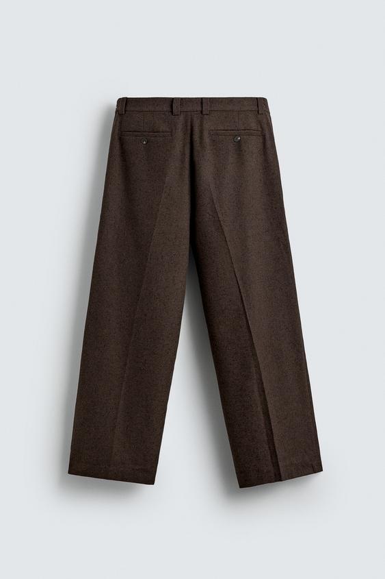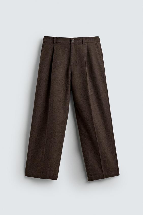 ZARA БРЮКИ С ЗАЩИПАМИ И ПУГОВИЦАМИ, КОРИЧНЕВЫЙ