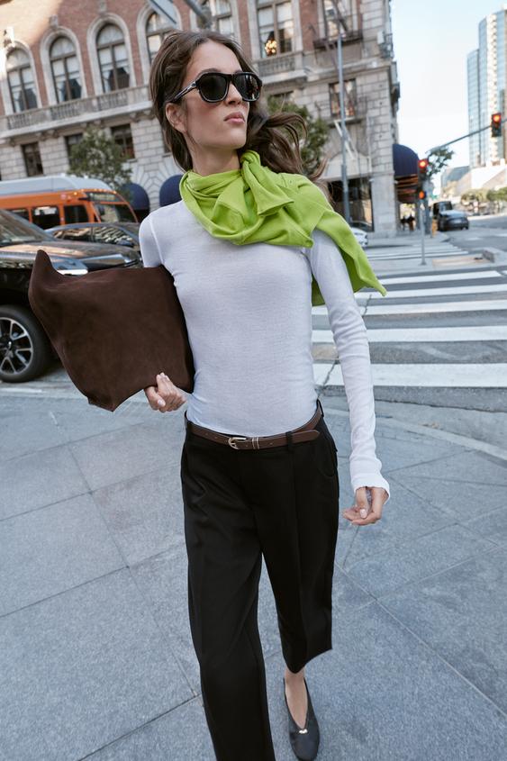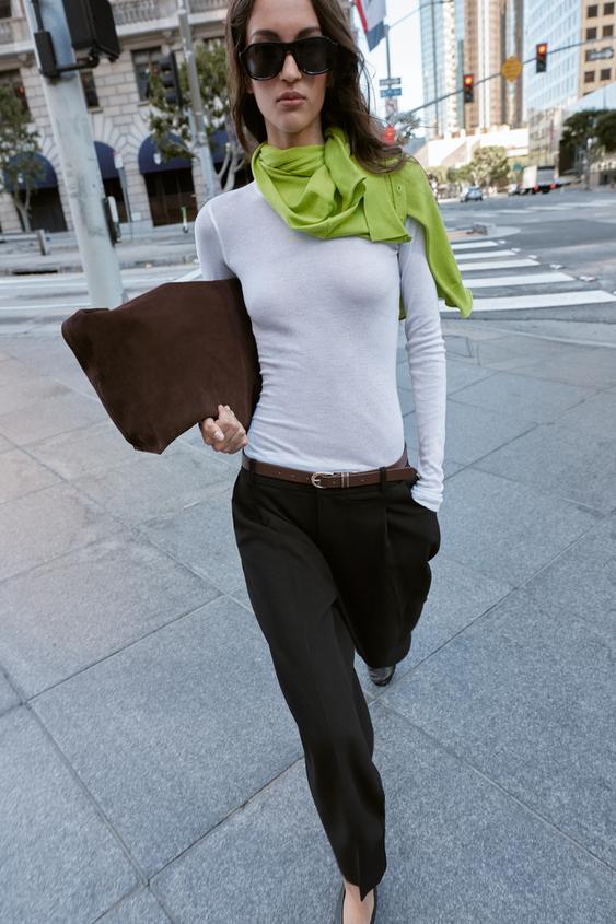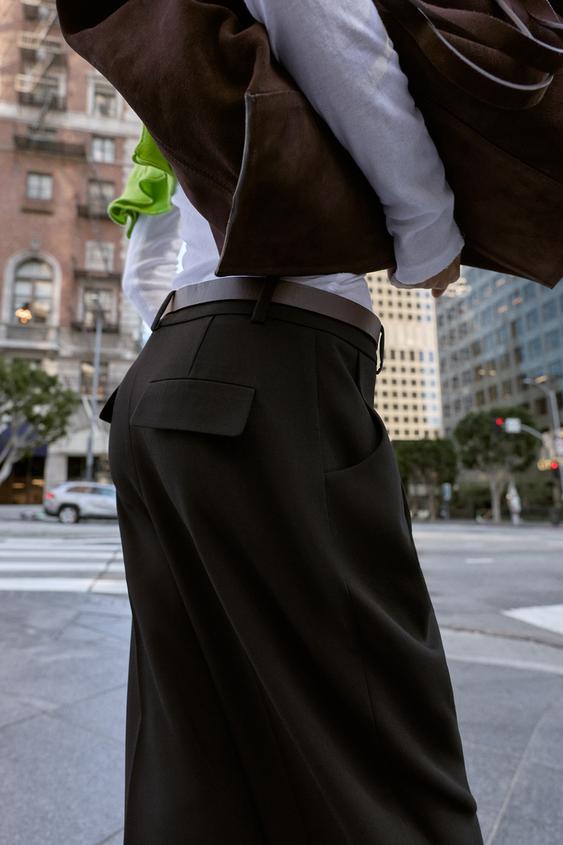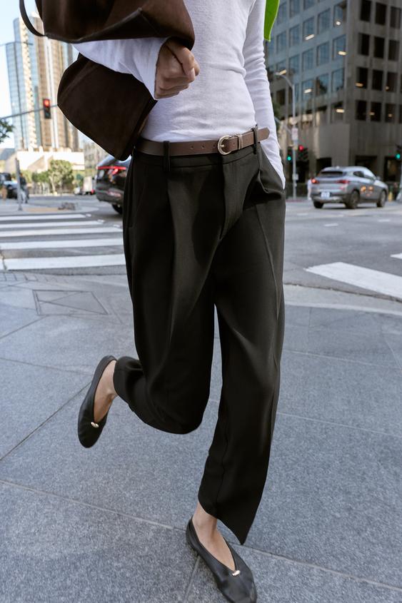 ZARA БРЮКИ С ЗАЩИПАМИ И РЕМНЕМ, ЧЕРНЫЙ