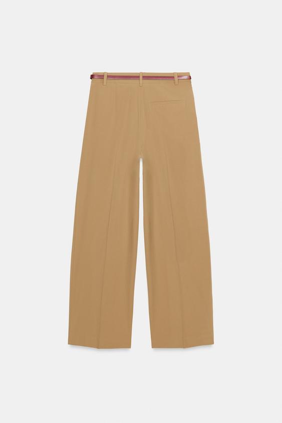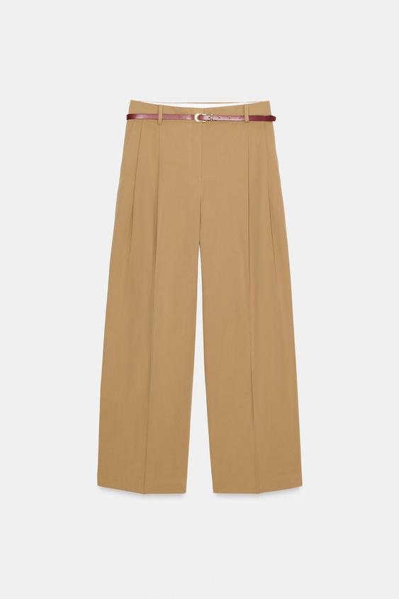 ZARA БРЮКИ С ЗАЩИПАМИ И РЕМНЕМ, РЫЖЕВАТО-КОРИЧНЕВЫЙ
