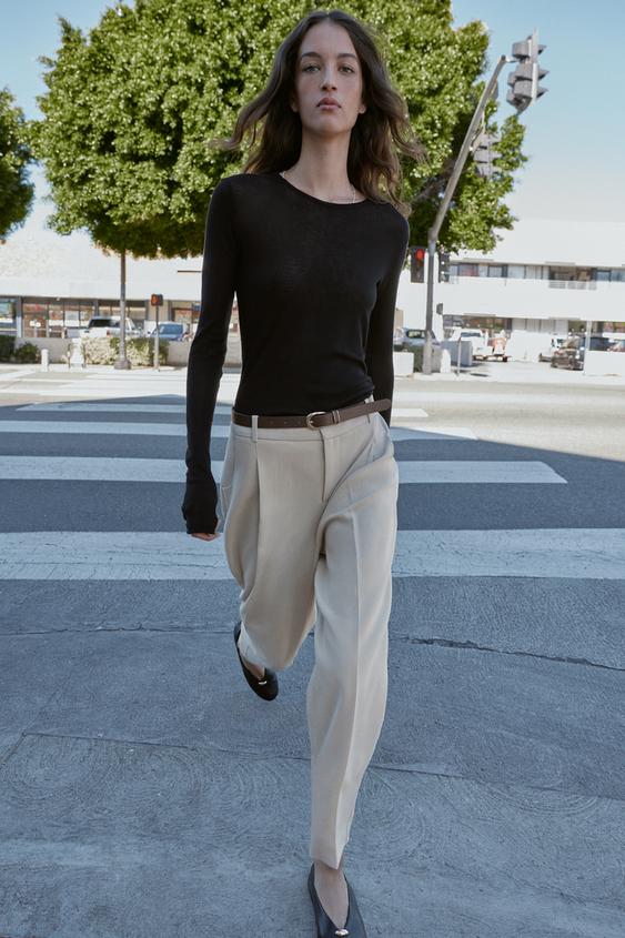 ZARA БРЮКИ С ЗАЩИПАМИ И РЕМНЕМ, СВЕТЛЫЙ ЖЕЛТО-КОРИЧНЕВЫЙ