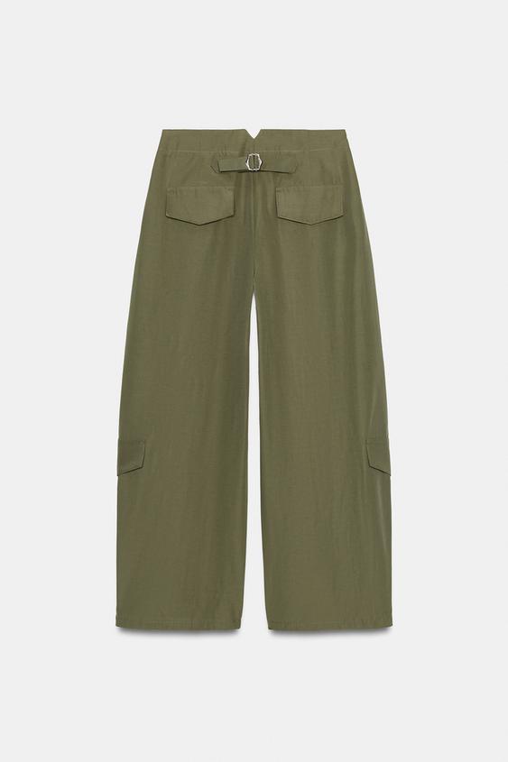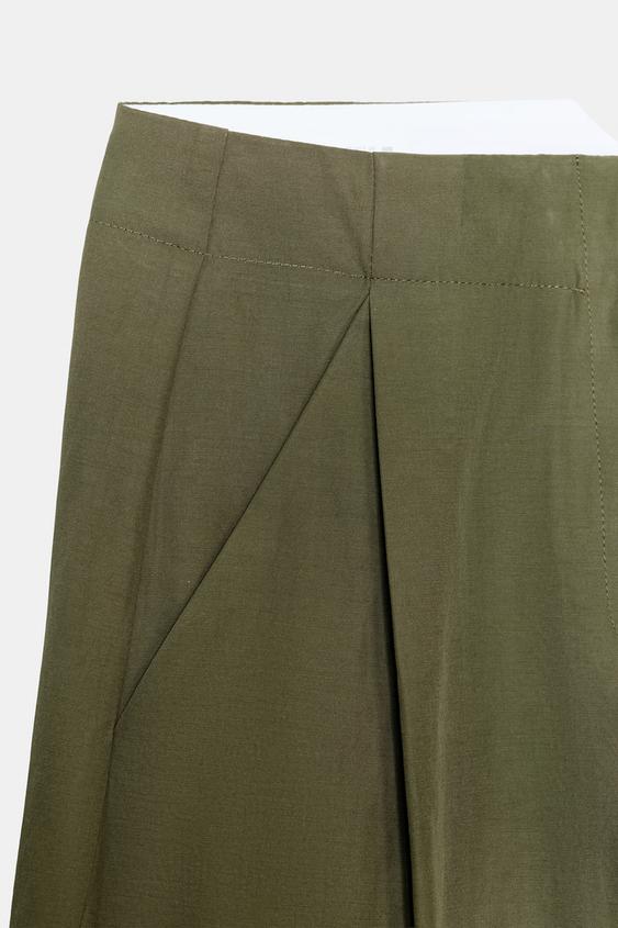 ZARA БРЮКИ С ЗАЩИПАМИ И ШЛЕВКОЙ НА СПИНКЕ, ХАКИ