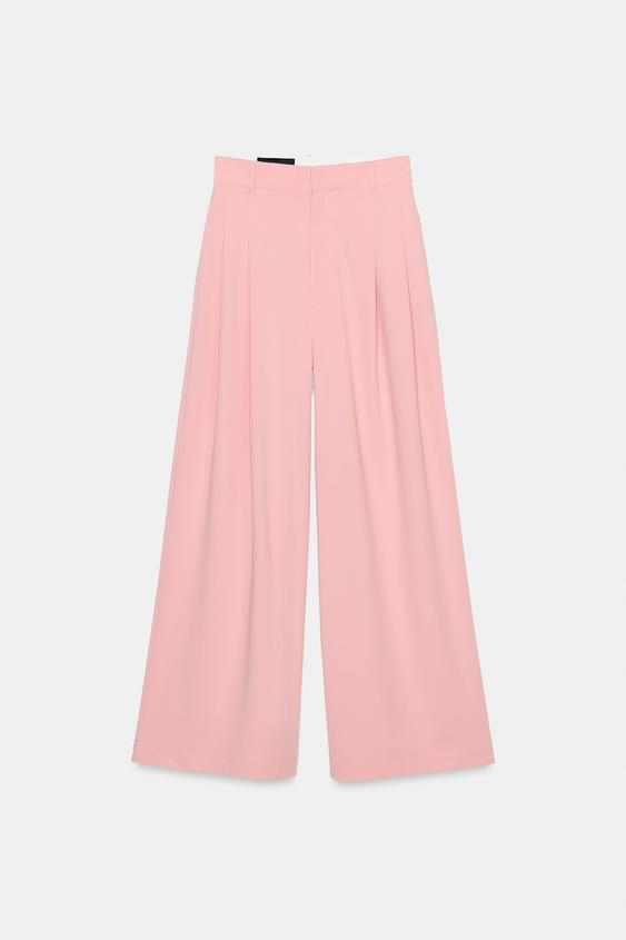 ZARA БРЮКИ С ЗАЩИПАМИ, МЯГКИЙ РОЗОВЫЙ