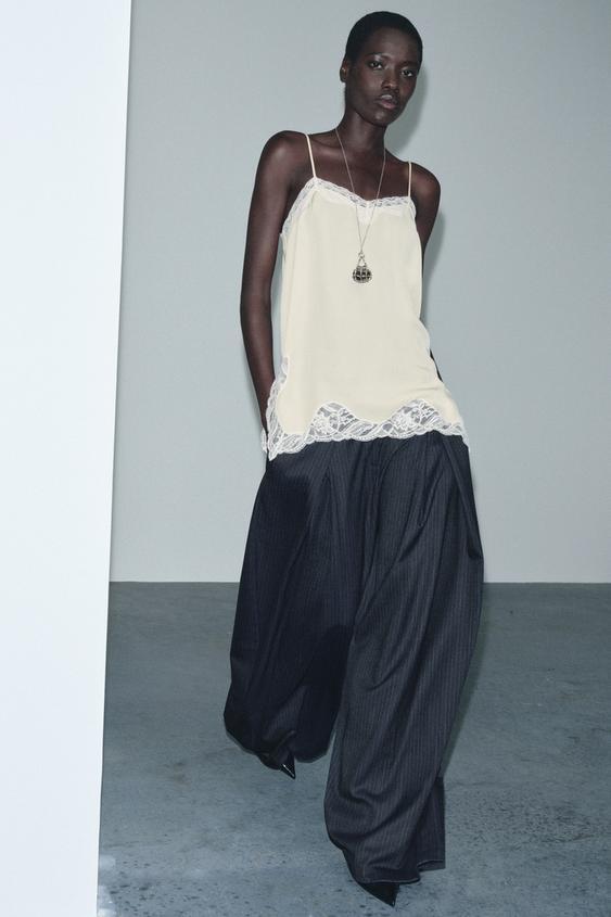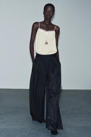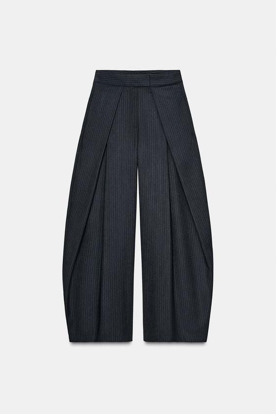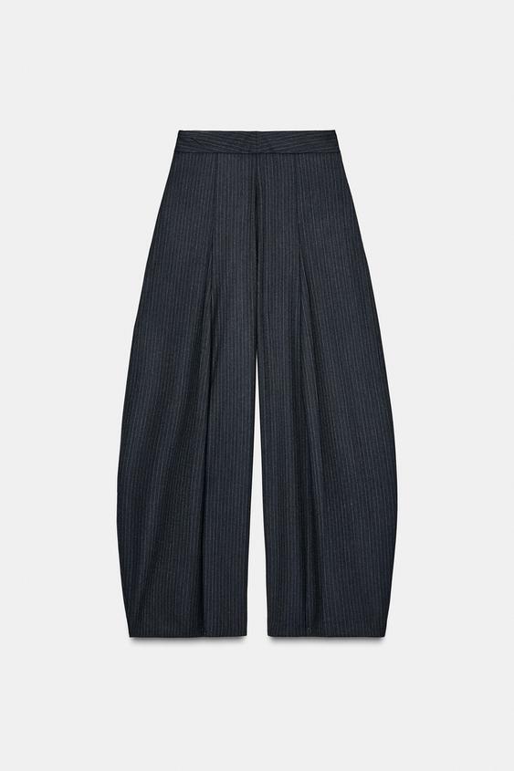 ZARA БРЮКИ С ЗАЩИПАМИ В ПОЛОСКУ — ZW COLLECTION, МОРСКОЙ СИНИЙ