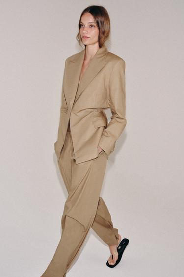 ZARA БРЮКИ С ЗАЩИПАМИ — ZW LIMITED EDITION, ПЕСОЧНЫЙ